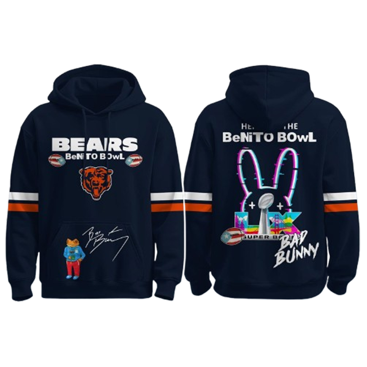 The 2026 Bears Bad Bunny BeNiTo BOwl SB LX Hoodie captures the raw energy of a high-stakes 2026 championship night blended with the unmistakable visual language of global pop culture.
