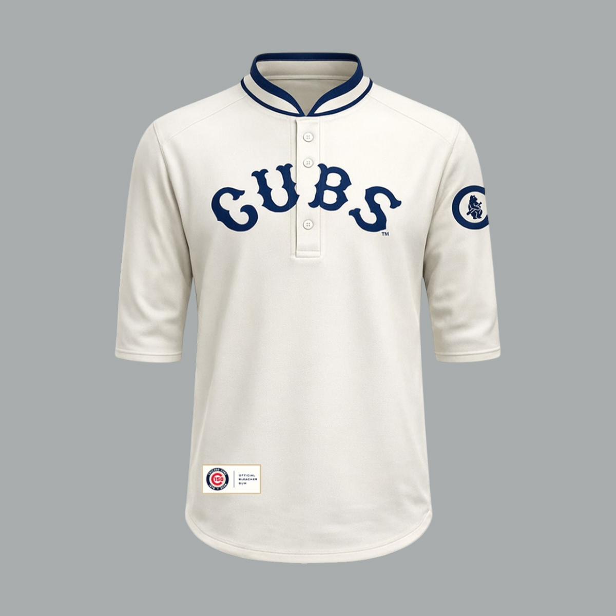 The 2026 Cubs 1910s Jersey Giveaway features a cream base with bold blue CUBS lettering across the chest for a simple and classic look. The vintage-style collar, button placket, and three-quarter sleeves give it a strong throwback feel, while the sleeve patch adds an extra touch of character. Its clean design makes it easy to wear and easy to notice.