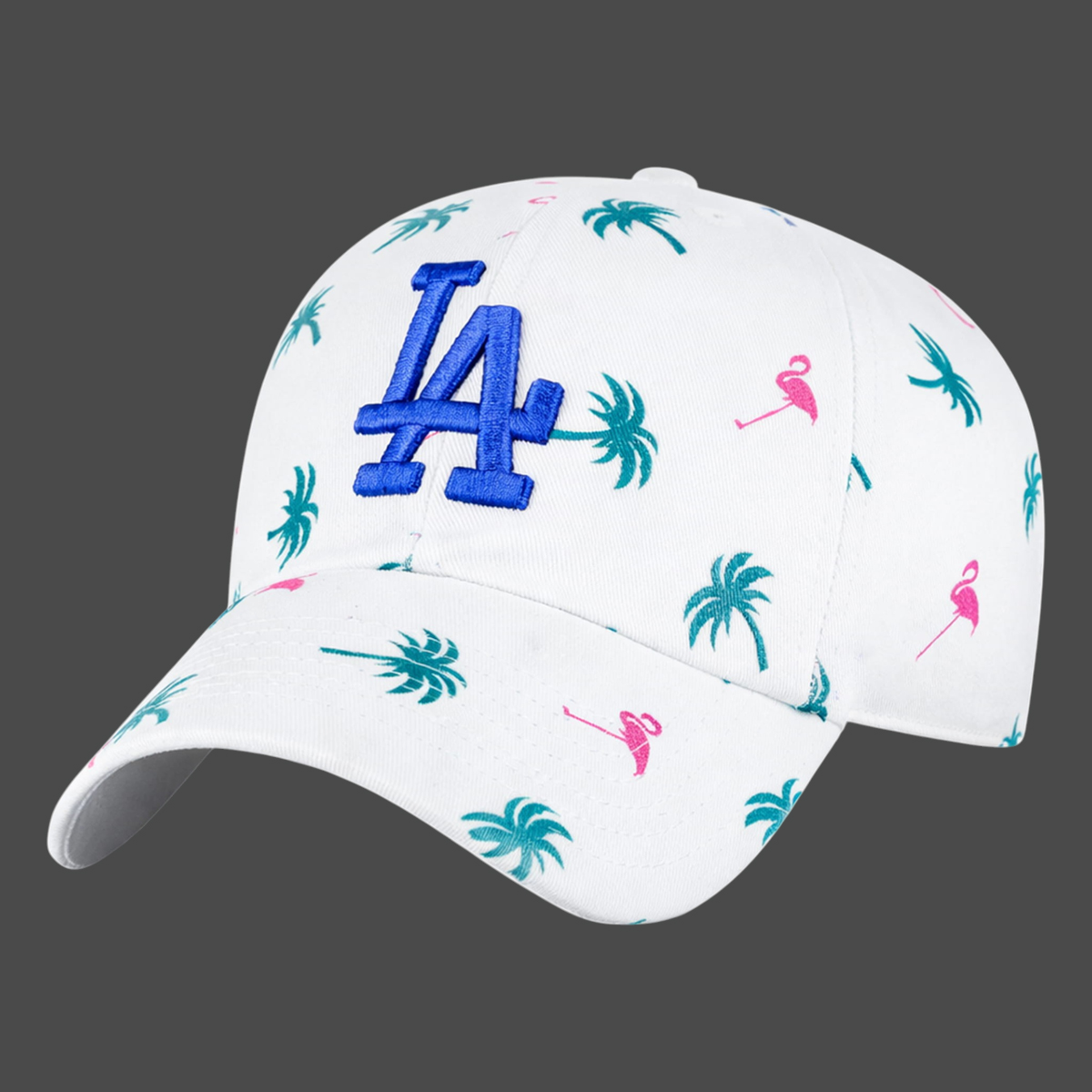 The 2026 Los Angeles Dodgers Spring Training Flamingo Hat is made to stand out in the best way—clean enough for everyday wear, yet playful enough to feel like a getaway. The cap comes in a crisp white base covered with an all-over pattern of teal palm trees and pink flamingos, creating a fresh spring-and-summer vibe that instantly lifts any outfit. On the front panel, the raised embroidered “LA” in vivid royal blue delivers a premium, textured focal point that pops against the bright background. The classic curved brim keeps the silhouette sporty and versatile, while the structured crown helps the hat keep its shape whether you’re wearing it daily or packing it for travel. From casual streetwear to weekend trips, this hat slides easily into your rotation and adds personality without feeling overdone.