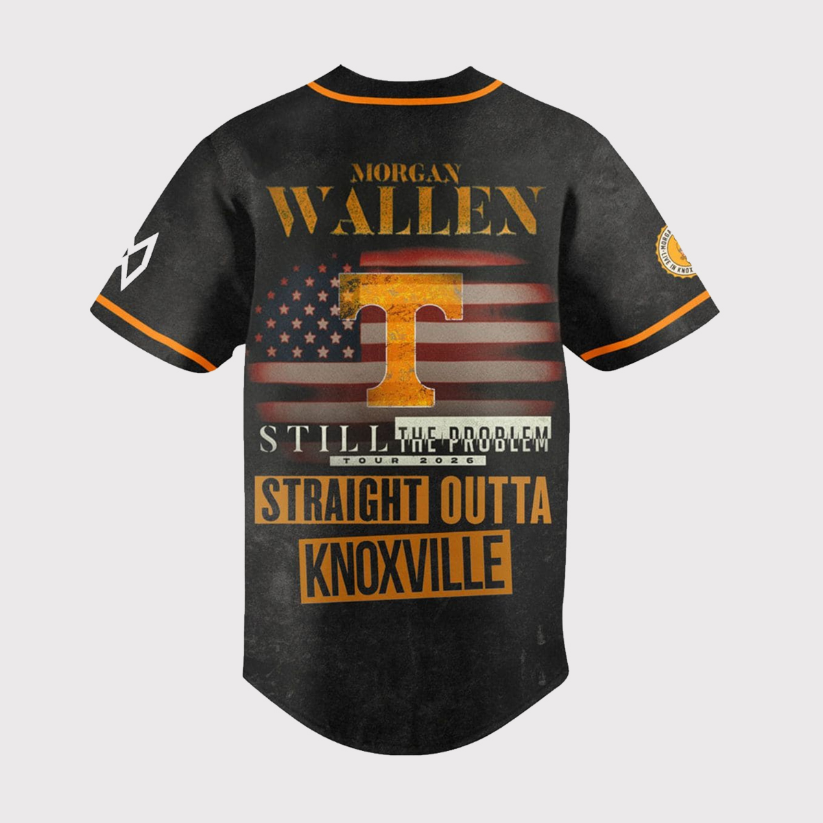 Turn it around, and the story becomes even stronger. The back design highlights “Morgan Wallen” at the top, paired with a large orange “T” layered over a distressed American flag graphic. Below, the words “Still The Problem Tour 2026” and “Straight Outta Knoxville” anchor the jersey firmly to the tour and its roots. This layout connects the piece directly to the 2026 tour era, making it feel like a wearable memory of packed venues, loud sing-alongs, and unforgettable nights tied to Knoxville’s cultural identity.