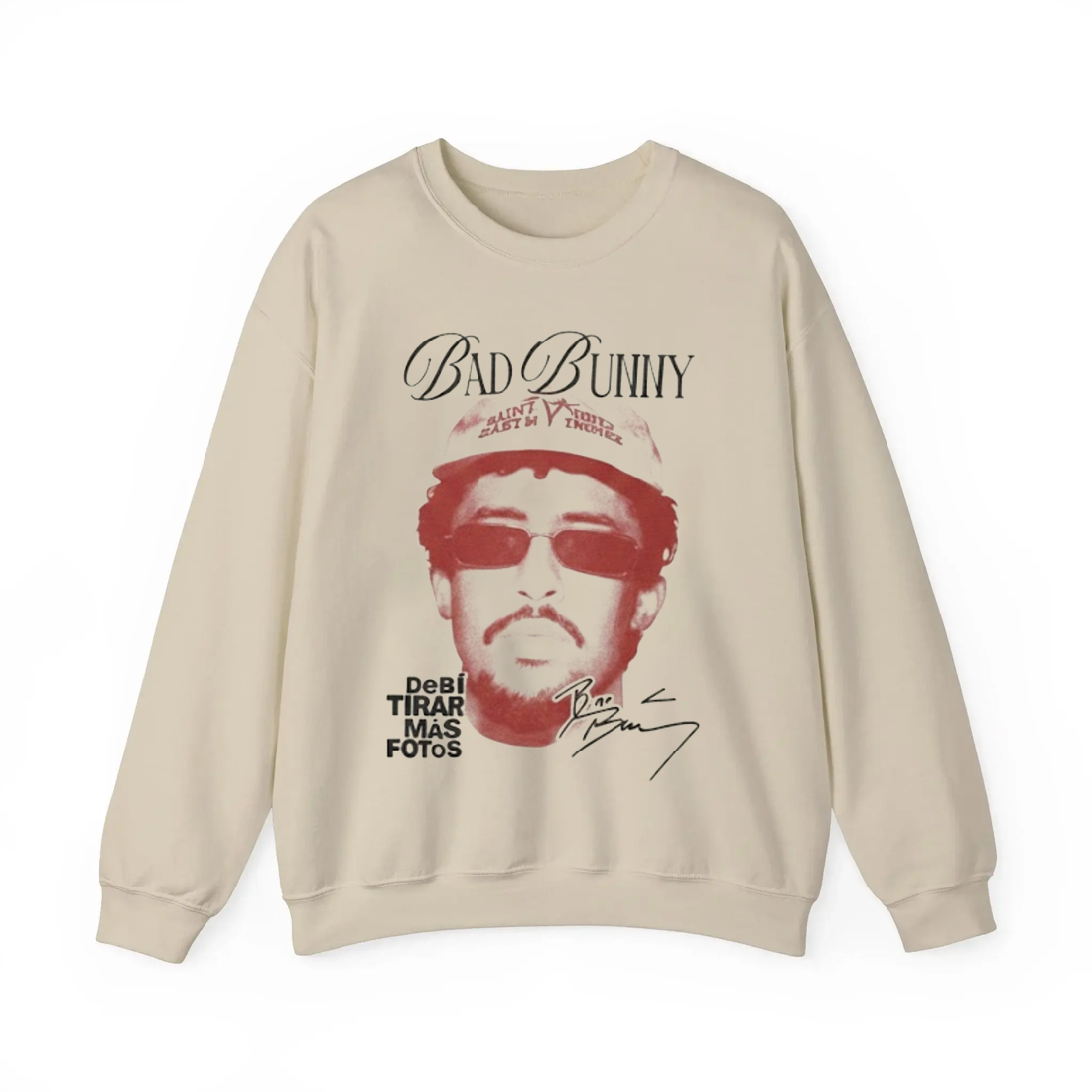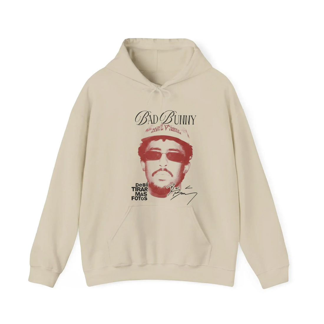 The Bad Bunny Debi Tirar Mas Fotos Shirt features a standout graphic design that captures the energy and personality of one of music’s most influential artists. Set on a soft beige backdrop, the shirt showcases a striking image of Bad Bunny wearing sunglasses and a cap, with bold typography that reads “Debi Tirar Más Fotos” alongside his stylized signature. The shirt’s high-quality cotton blend offers a comfortable fit perfect for everyday wear or concert nights, while the detailed artwork gives it a vintage feel that resonates with fans of all styles.