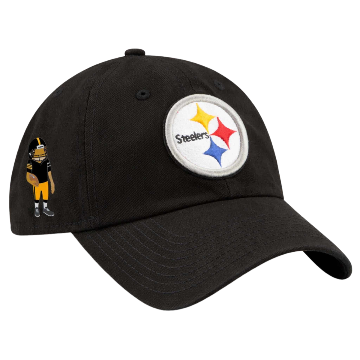 What truly sets this piece apart is the side detail: a small illustrated football character inspired by Bad Bunny’s playful, boundary-pushing visual language that influenced crossover fashion in 2026. This character adds narrative and charm while staying understated, rewarding a closer look without distracting from the main emblem. Vent eyelets enhance airflow for all-day comfort, and the structured panels help the hat maintain its shape through regular wear. The all-black palette anchors the design in Pittsburgh’s industrial roots, while the thoughtful accents bring in modern cultural edge.