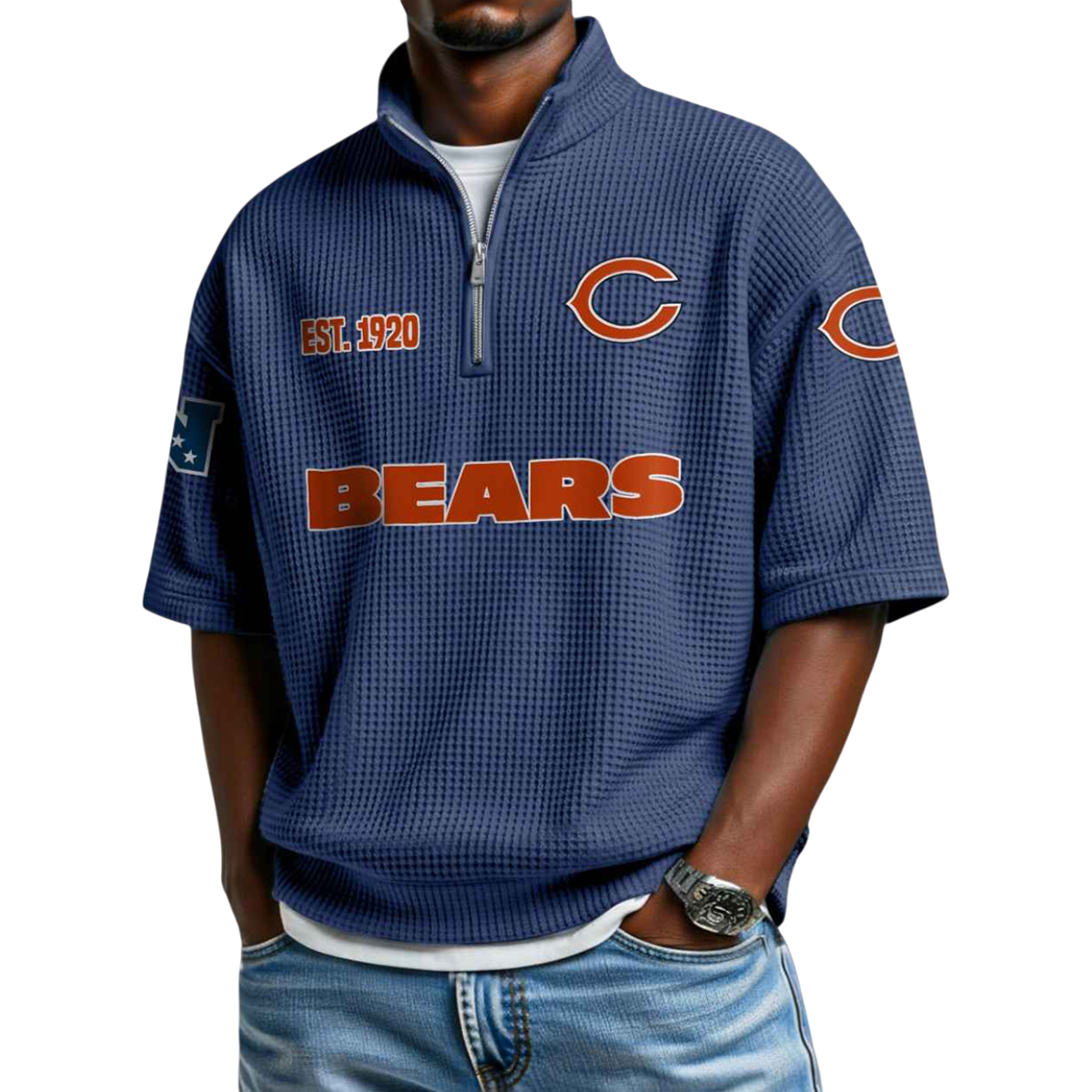 The Bears EST 1920 Quarter Zip Shirt is crafted for fans who understand that true legacy is built over generations. With its strong quarter-zip silhouette, textured fabric, and bold heritage details, the Bears EST 1920 Quarter Zip Shirt reflects more than a team name, it represents over a century of toughness, loyalty, and Chicago football identity.