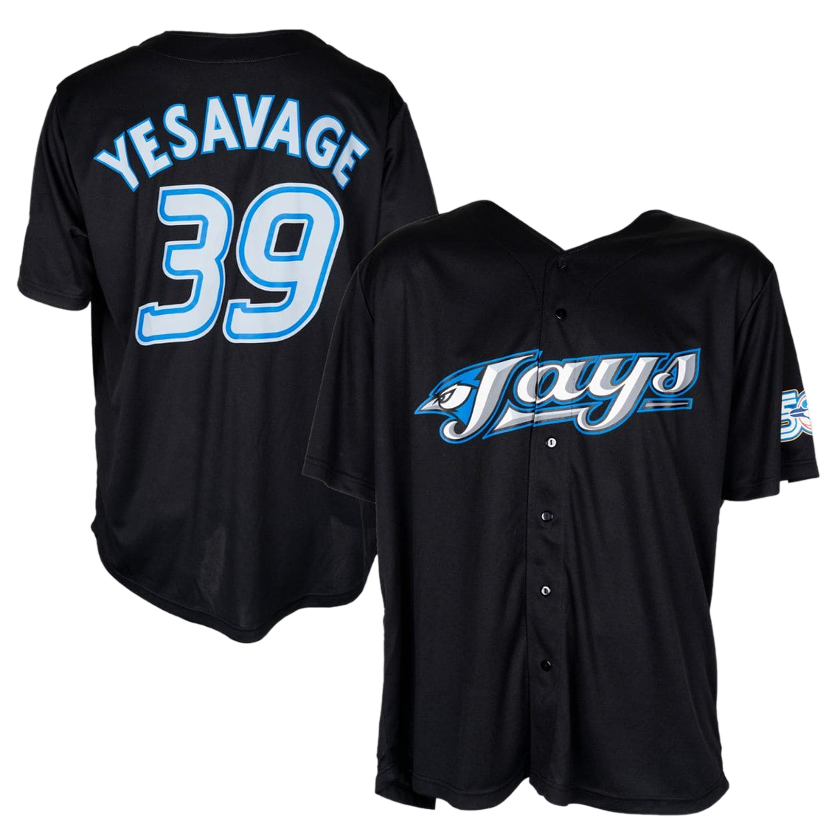 The Blue Jays 2026 Trey Yesavage Angry Bird Jersey features a sleek black base that amplifies its bold personality. Across the front, the stylized “Jays” wordmark paired with the fierce bird graphic delivers a sharp, modern look. On the back, “Yesavage” and the number 39 are displayed in striking blue-and-white contrast, making the jersey instantly recognizable from every angle. Clean button-front styling and short sleeves keep the silhouette classic, while the darker colorway adds a street-ready edge that feels fresh for 2026.