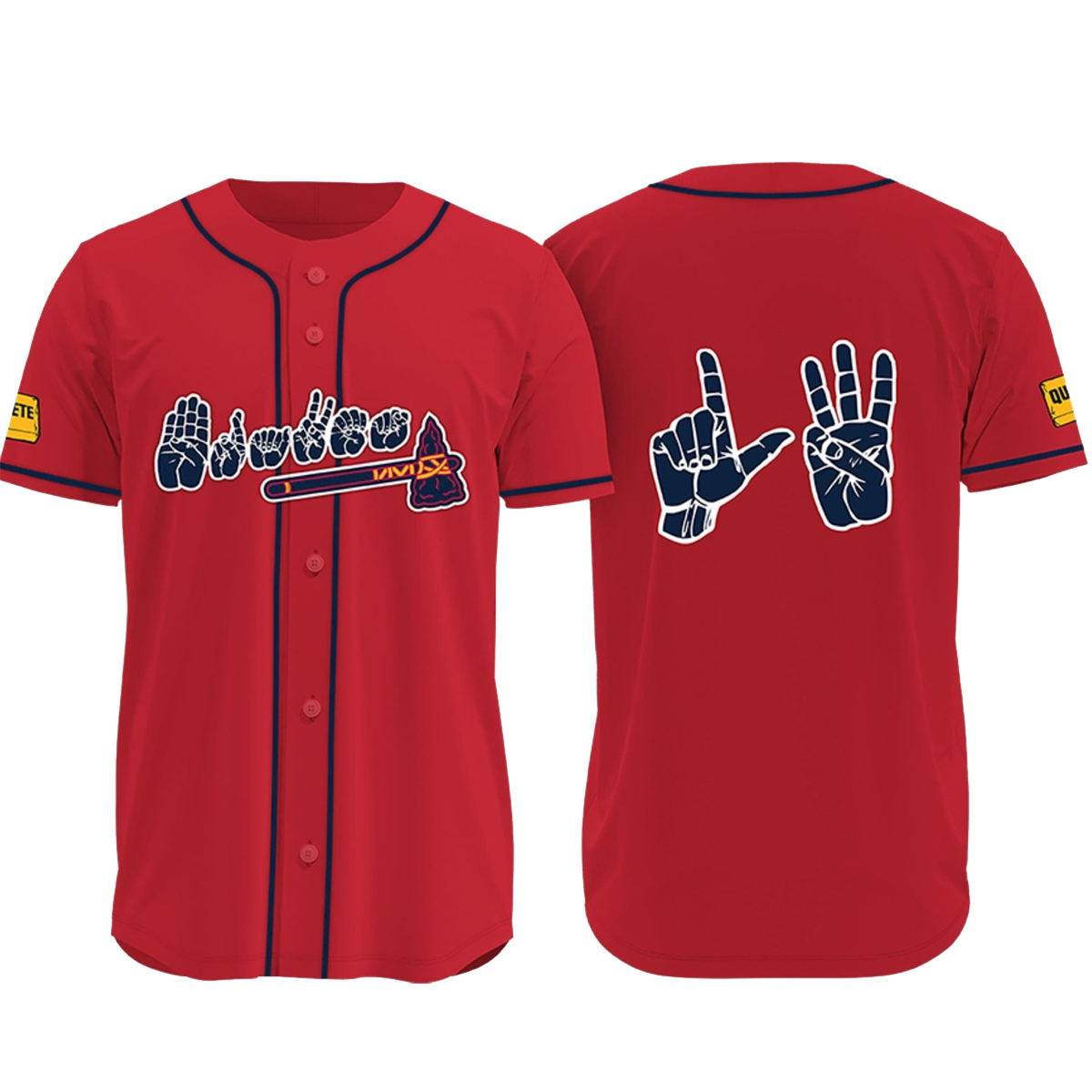 You should grab this jersey because it’s more than a clean red-and-navy look: it’s a conversation starter that celebrates communication and inclusion while still delivering a timeless, sporty silhouette; the button-front styling makes it easy to wear open over a tee or buttoned up for a sharper fit, the contrast piping adds a premium visual finish that elevates the whole piece, the front-and-back graphics give you two strong looks in one (perfect for photos and group outings), and the lightweight, easy-wear construction keeps it comfortable across seasons—plus the Braves 2026 ASL Jersey Giveaway adds an extra layer of excitement, turning your purchase into a chance to be part of something memorable.