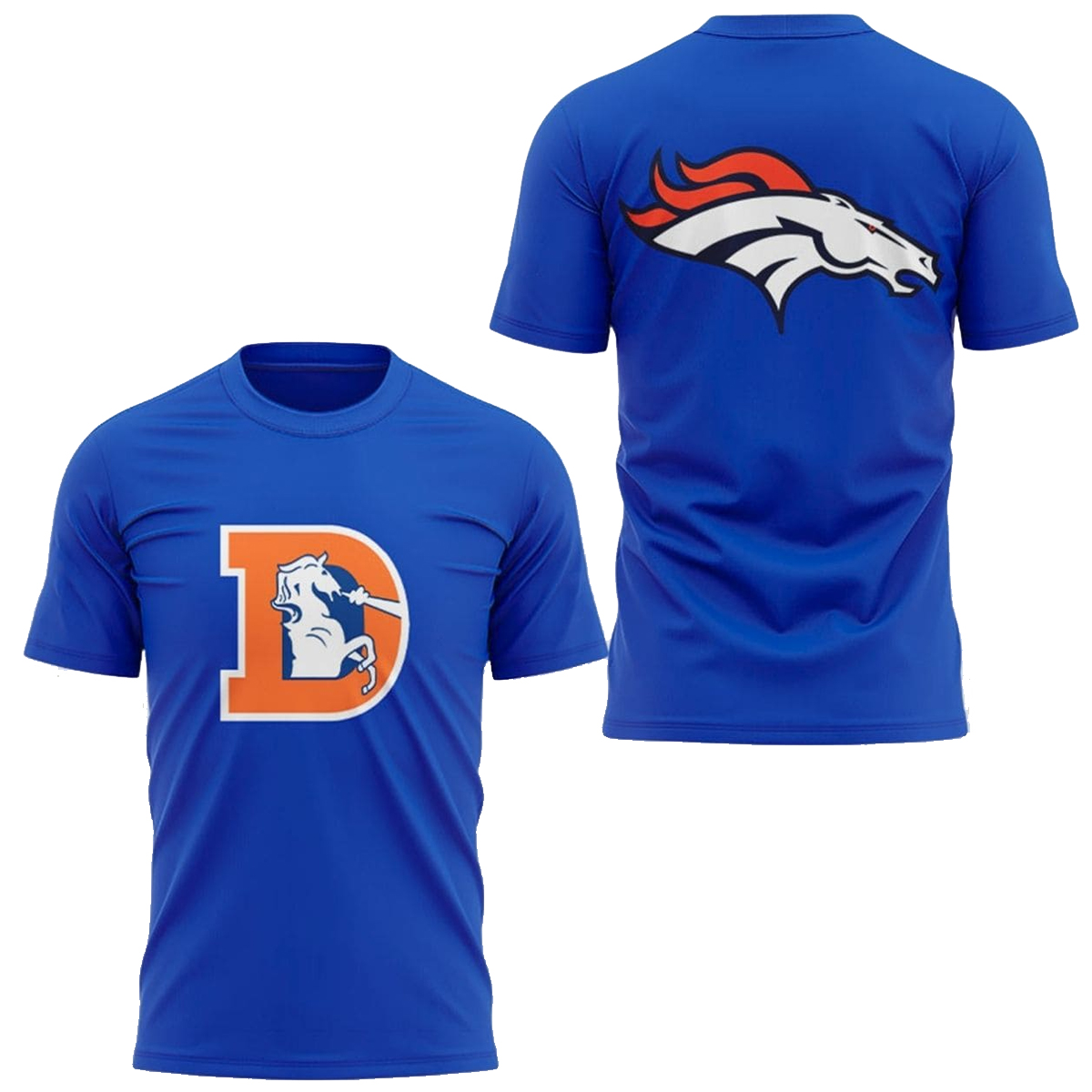 Right from the start, the Broncos Coach Sean Payton Throwback Blue Shirt stands out through its simplicity and symbolism. The front features a bold orange “D” emblem with a white horse graphic, a visual nod to Denver’s football identity from earlier eras. It’s clean, centered, and instantly recognizable. The back continues the statement with a large horse head logo in white and orange, creating balance and giving the shirt a strong presence from every angle.