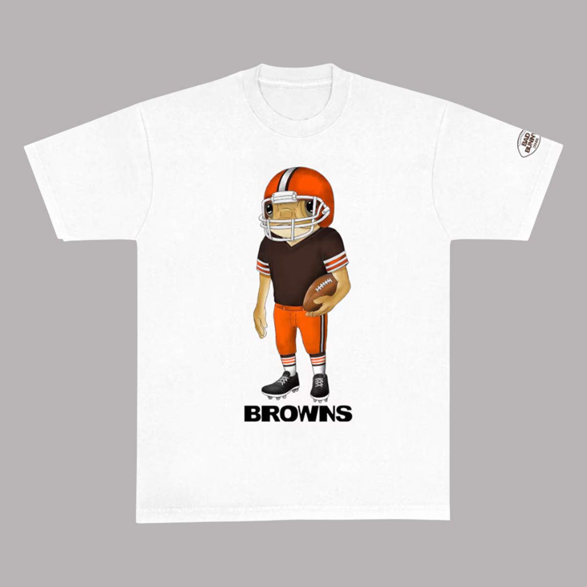 The Browns Concho Bad Bunny 2026 Shirt features a crisp white base that highlights every design element with clarity. On the front, a stylized illustrated football character dressed in Browns colors stands confidently, ball in hand. The character-driven artwork reflects a wider 2026 trend where fans gravitated toward playful, personality-filled visuals rather than rigid, traditional graphics. Beneath the illustration, bold “Browns” lettering anchors the design firmly in team identity.