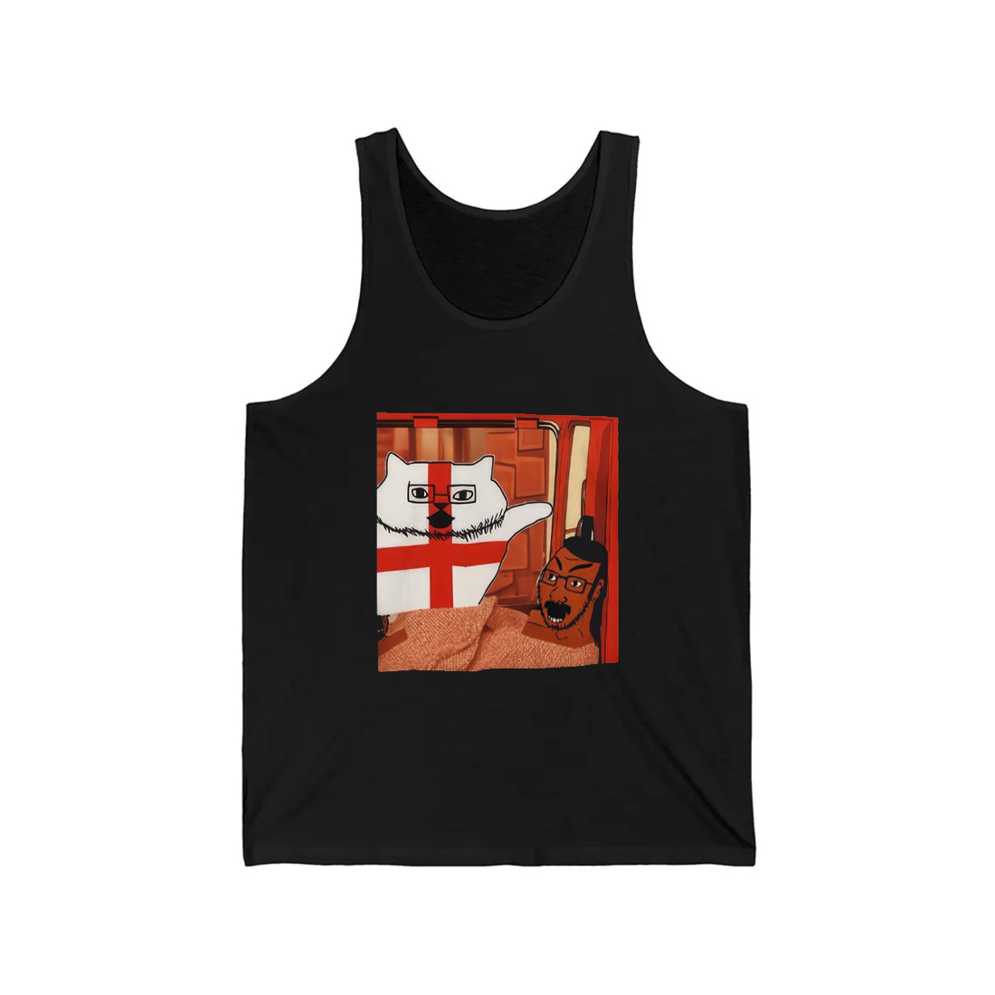 The Cal Clear Them Out Cat Shirt is a stylish black tee that combines humor and individuality. Featuring an illustration of a cat with glasses alongside an expressive figure, this design pops with vibrant colors and a quirky vibe. The image is set against a warm, textured background, making it an eye-catching piece that brings energy and fun to any outfit. Made with soft cotton material, this shirt is not only trendy but comfortable too, ensuring you can wear it all day long.