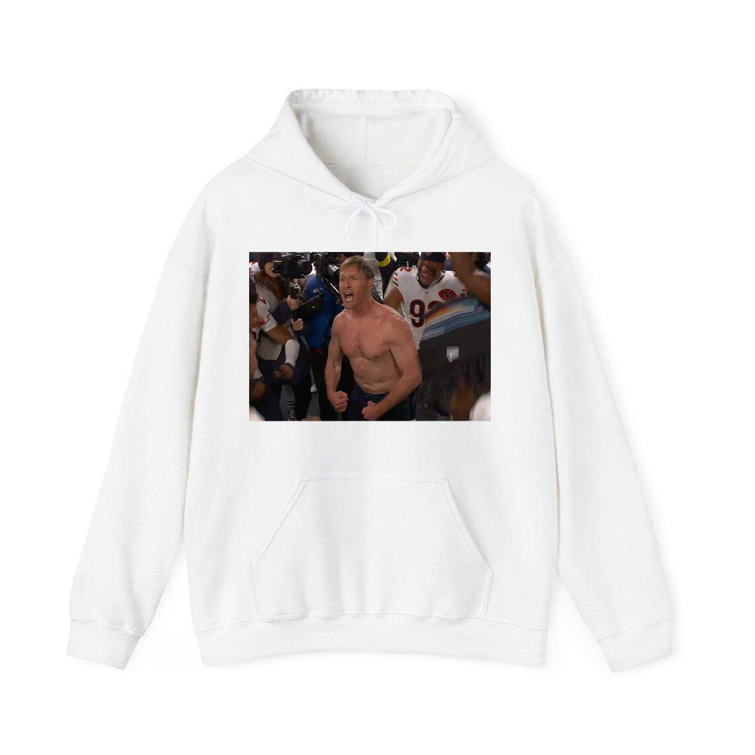 The Chicago Bears Coach Ben Johnson Shows Off T-Shirt is the ultimate tribute to one of the most unforgettable moments in recent football memory. Featuring an electrifying photo of Coach Ben Johnson in a shirtless, adrenaline-fueled locker room celebration, this tee is more than just clothing it’s a statement of passion, leadership, and viral energy. .
