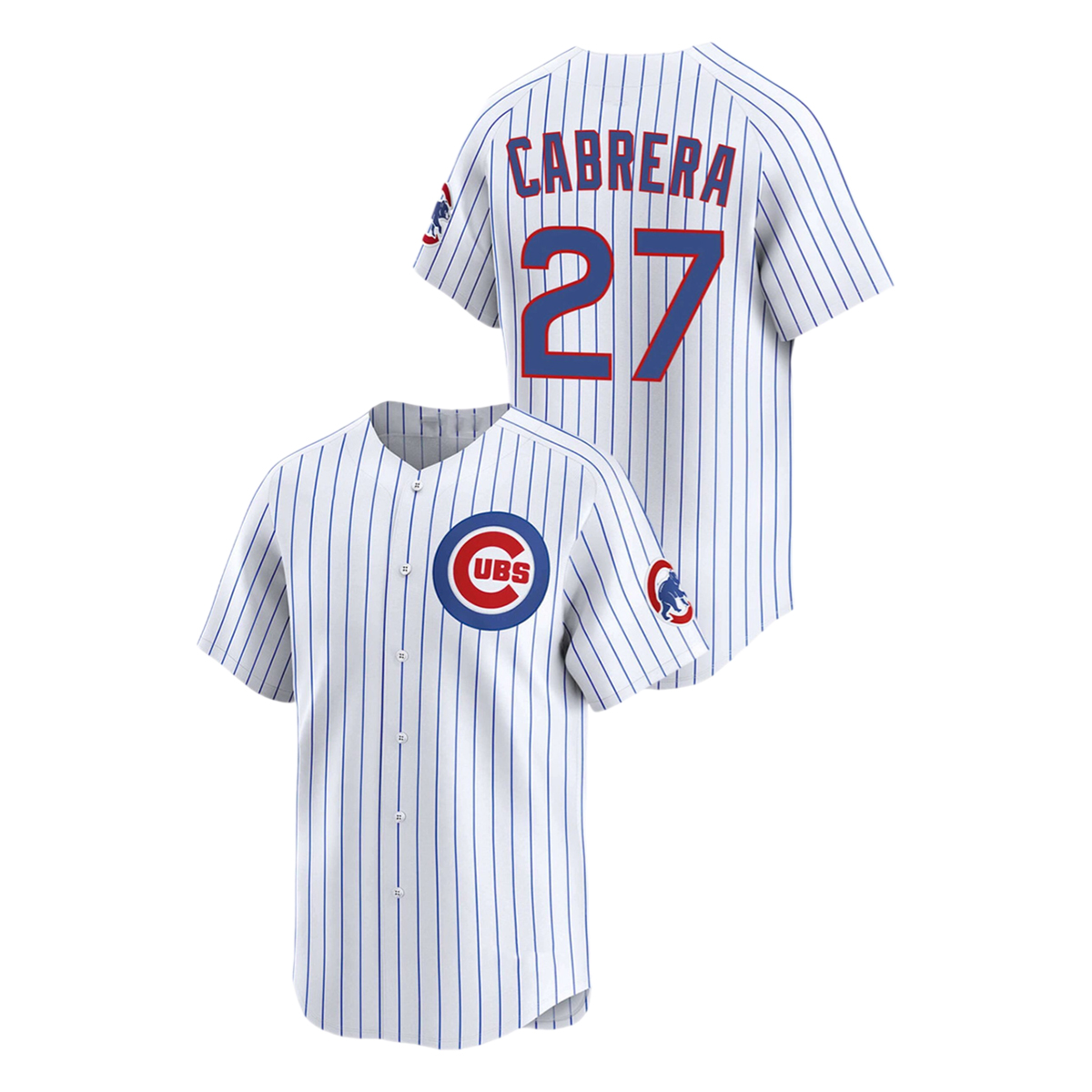 Turn the jersey around and the story becomes even more personal. The name “Cabrera” arches confidently across the upper back, paired with the number 27 in bold, contrasting color. This combination pays tribute to a player whose presence marked a memorable chapter in Cubs history, particularly during seasons when hope, resilience, and long-awaited success became central themes for fans. The number 27 jersey became a familiar sight during pivotal games that helped shape one of the most emotional championship journeys in modern baseball culture.