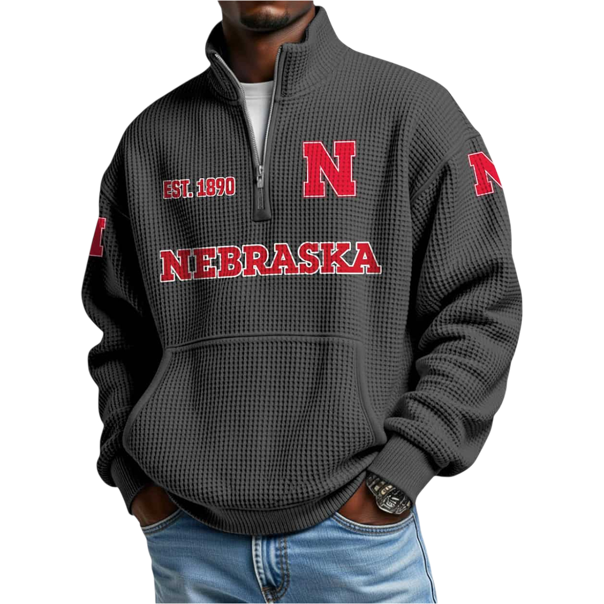 The Cornhuskers Est 1890 Waffle Stand Collar Half Zip Sweatshirt is ideal for those who want more than just warmth. The waffle texture elevates the design visually, while the stand collar delivers a cleaner, more refined silhouette compared to traditional hooded styles.