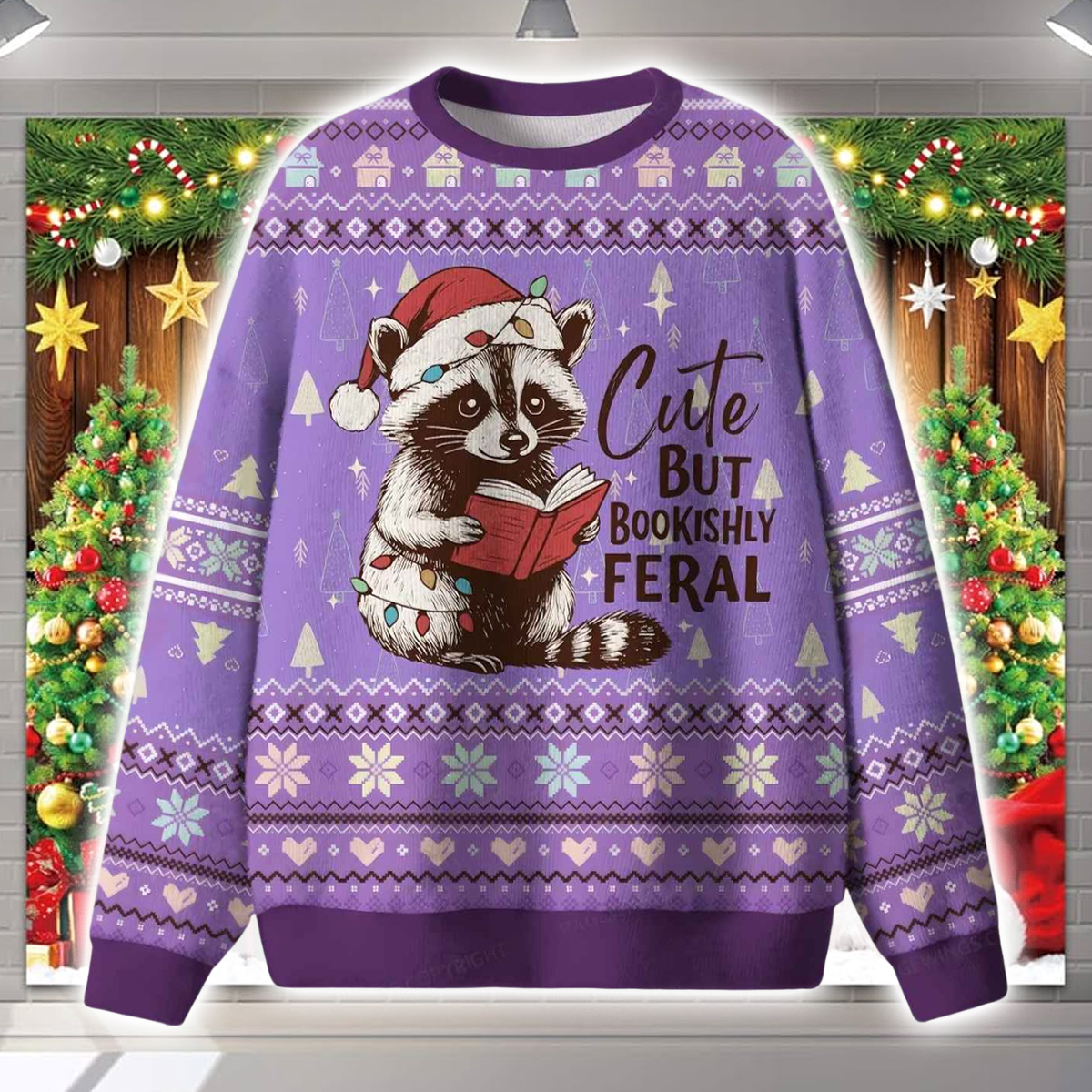 This sweater has become a favorite among book lovers, librarians, and introverts during the holiday season. It represents the fun side of being a reader, someone who may look quiet and cozy on the outside but has an adventurous mind full of imagination. It also fits perfectly into the current trend of self-expression through fashion, where people proudly wear designs that reflect their passions and humor. The raccoon, with its mischievous yet charming look, reminds us all that being “bookishly feral” is something to celebrate, especially when wrapped in holiday cheer.