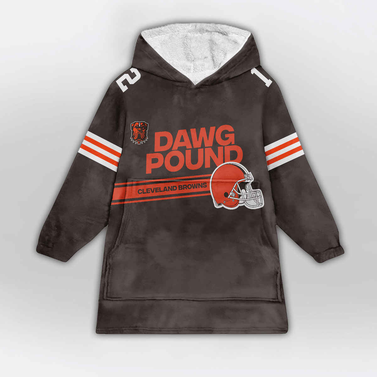 Represent the Dawg Pound with the Dawg Pound Sanders 12 Browns Football Unisex Blanket Hoodie