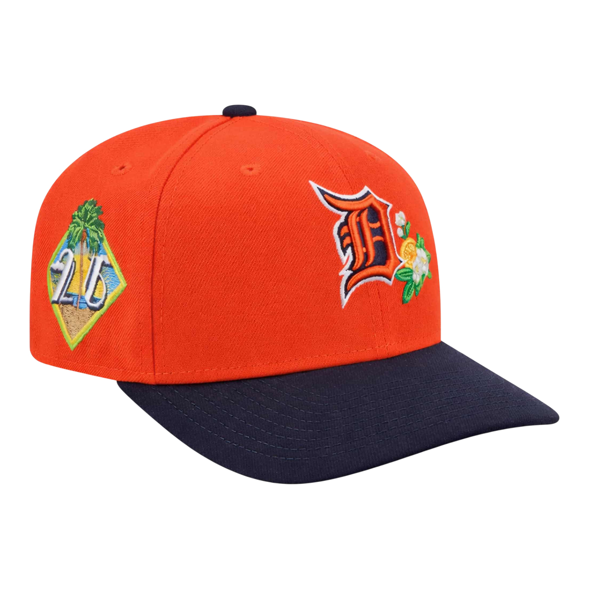 From the first glance, the Detroit Tigers 2026 Spring Training Hat stands out thanks to its vibrant orange crown, a color that instantly signals Tigers identity. Paired with a deep navy brim, the contrast feels bold yet balanced, making the hat easy to wear without feeling overpowering. On the front, the classic Old English-style “D” is embroidered cleanly, anchoring the look with unmistakable Detroit heritage. On the side panel, a detailed “26” patch appears alongside palm trees, a subtle reference to spring training settings and sunlit afternoons. A small floral accent near the logo adds a fresh, seasonal touch that softens the design while adding depth and character.