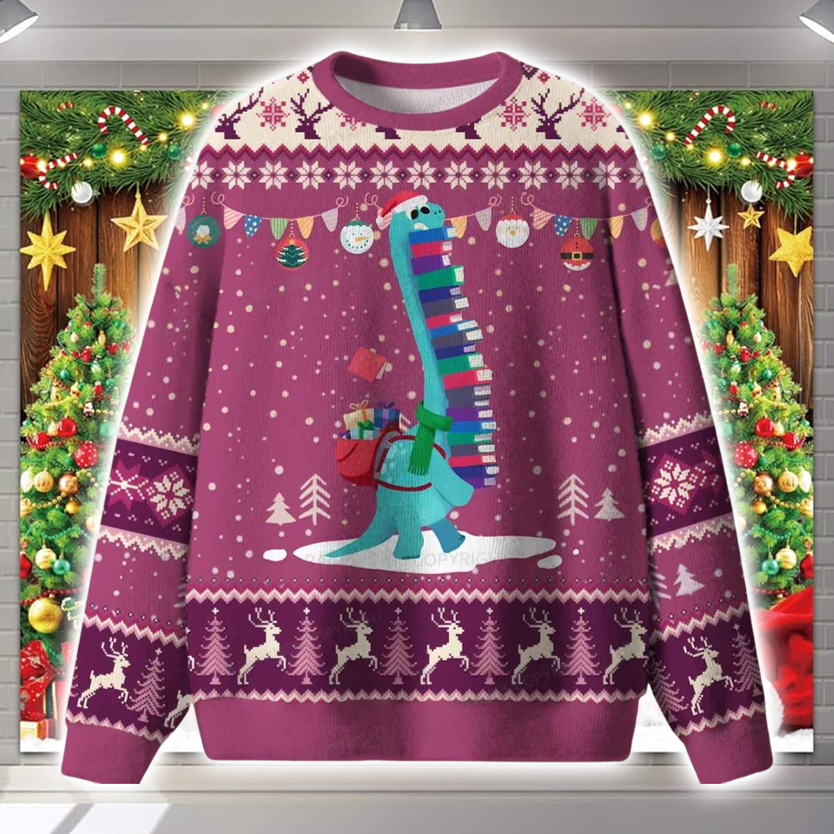 This sweater has become a favorite among readers and teachers during the holiday season, often spotted at cozy book club parties and festive classroom events. It’s not just about Christmas cheer, it’s about celebrating curiosity and creativity. The dinosaur holding a mountain of books represents that joyful, childlike wonder that lives in every true reader’s heart. Whether you’re a student, a teacher, or just someone who loves dinosaurs and stories, this sweater lets your personality shine through in a fun and heartwarming way.