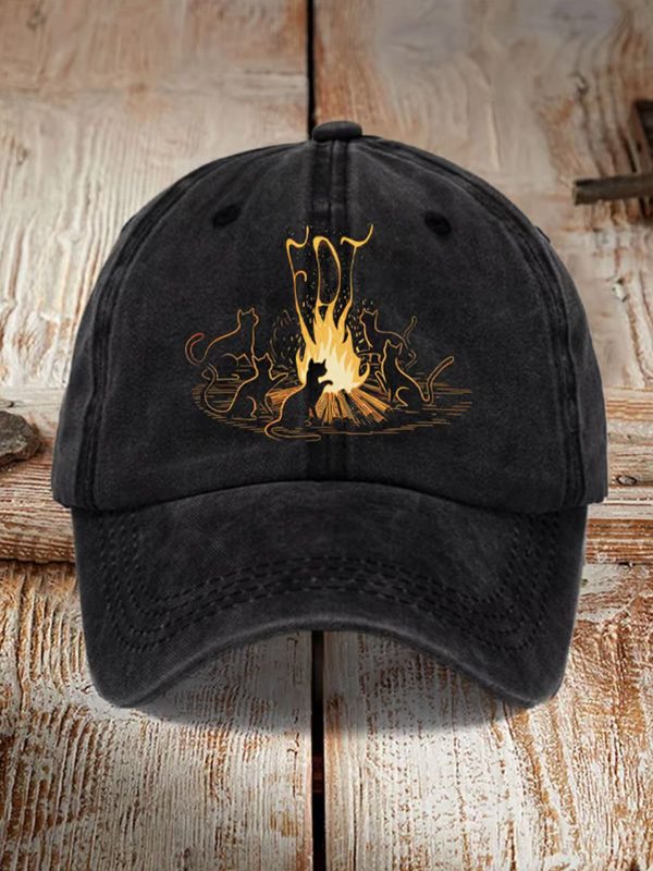 Distressed “Cat FDT” Cotton Hat: When Cats Set Fire and Politics Burn