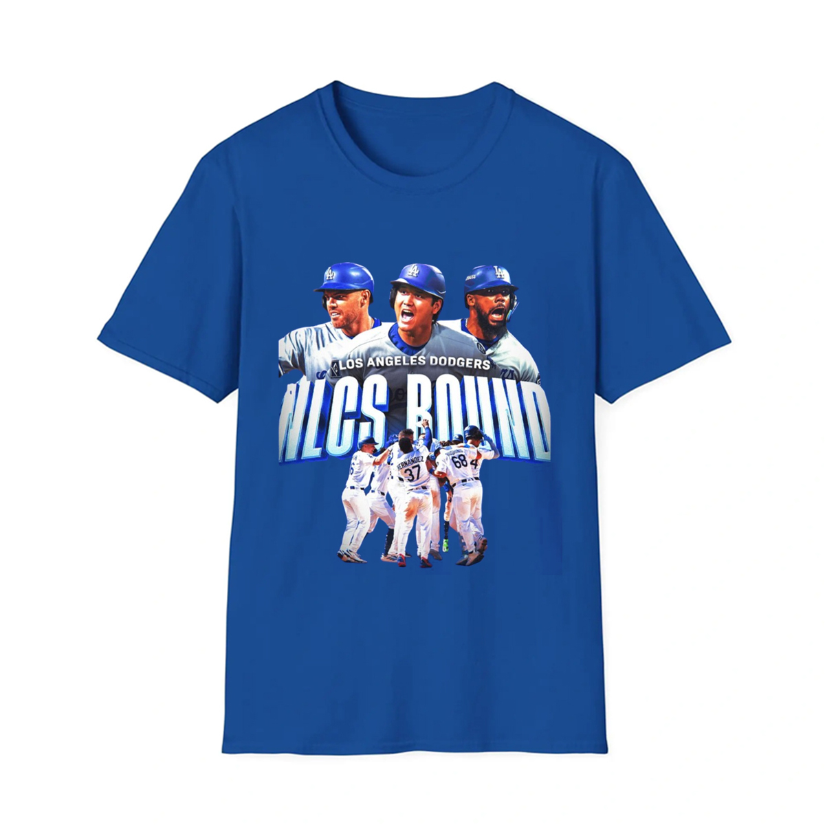 The Dodgers NLCS Bound 2025 T-Shirt captures the excitement and energy of the Dodgers as they make their mark in the postseason. Featuring an action packed graphic, this shirt highlights some of the team’s key players, celebrating their hard-earned spot in the NLCS. The vibrant blue background makes the energetic imagery pop, showcasing the team’s triumph and the passion of their fans.
