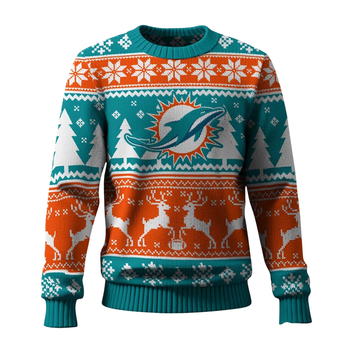 Dolphins Reindeer Football Christmas Ugly Sweater