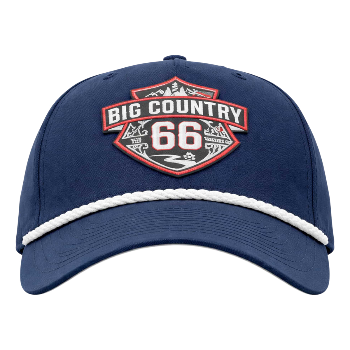The design of the Drake Maye Big Country 66 Hat is bold without being loud. A deep navy crown provides a strong, versatile base, while the structured front panel keeps the silhouette clean and commanding. Centered on the crown is a shield-style patch featuring the words “BIG COUNTRY” above the number “66,” surrounded by subtle line art that hints at grit, physicality, and heartland toughness. A white rope detail runs across the brim, adding a classic touch that nods to vintage football aesthetics and old-school sideline style. The curved brim and balanced proportions make the hat easy to wear daily, whether you’re heading out casually or building a game-day look.