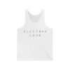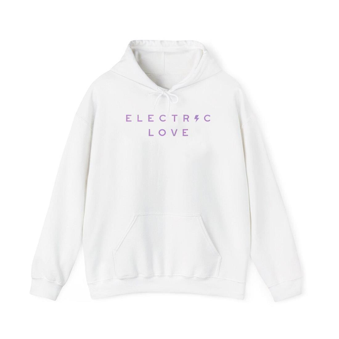 This white t-shirt features a clean, minimalist design with the phrase “ELECTRIC LOVE” printed in a soft lavender purple across the chest. A lightning bolt symbol replaces the letter “I,” adding a dynamic touch that represents power, resilience, and energy. The purple color is a significant element, as it is the color of epilepsy awareness, symbolizing hope and unity for those affected by the condition.