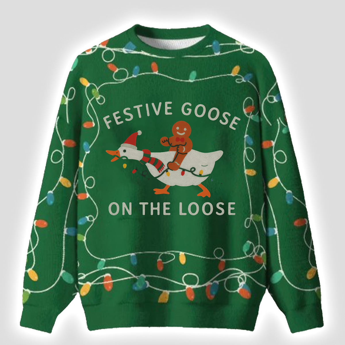 Festive Goose On The Loose 2025 Ugly Holiday Sweater
