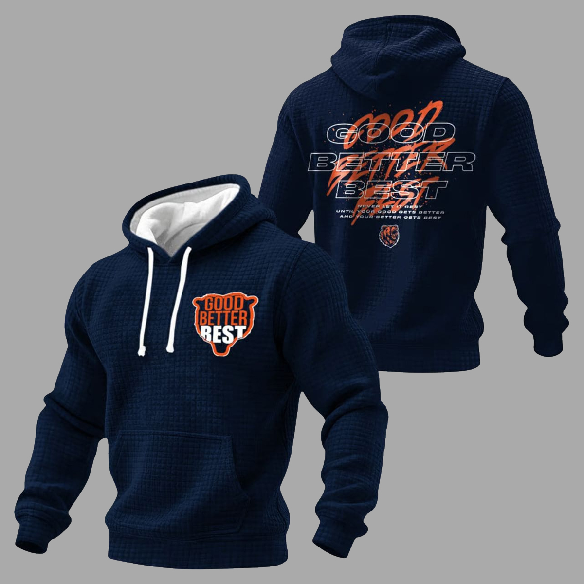 Some hoodies make you feel warm, some make you feel stylish but the Good Better Best Bears Print Waffle Fabric Hoodie does both while delivering a dose of motivation.