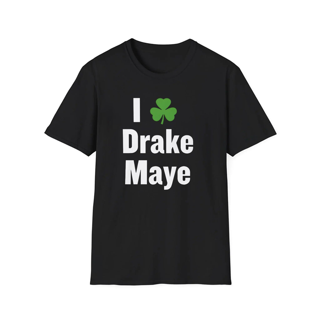 The front of the I Chisholm Drake Maye Shirt features a minimalist yet powerful layout: bold white lettering reading “I ☘ Drake Maye” set against a deep black background. The green clover icon replaces the heart symbol, adding layers of meaning luck, belief, and a nod to the passionate fan bases that embrace tradition and hope. The spacing and vertical alignment give the shirt a poster-like feel, making the message easy to read and instantly recognizable.