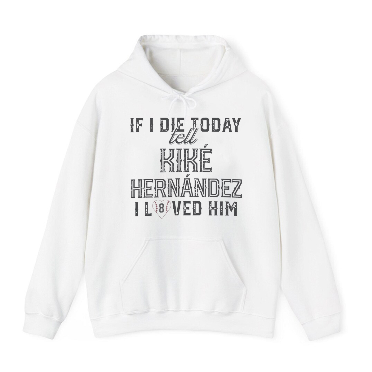 For those who wear their heart on their sleeve or rather, across their chest the If I Die Today Tell Kiké Hernández I Loved Him Shirt is a bold, hilarious, and oddly moving tribute to baseball crushes and undying loyalty. Printed on a clean white tee, the text is styled in a mix of dramatic fonts, like the kind you’d expect in a Broadway musical or a handwritten goodbye note left at home plate.