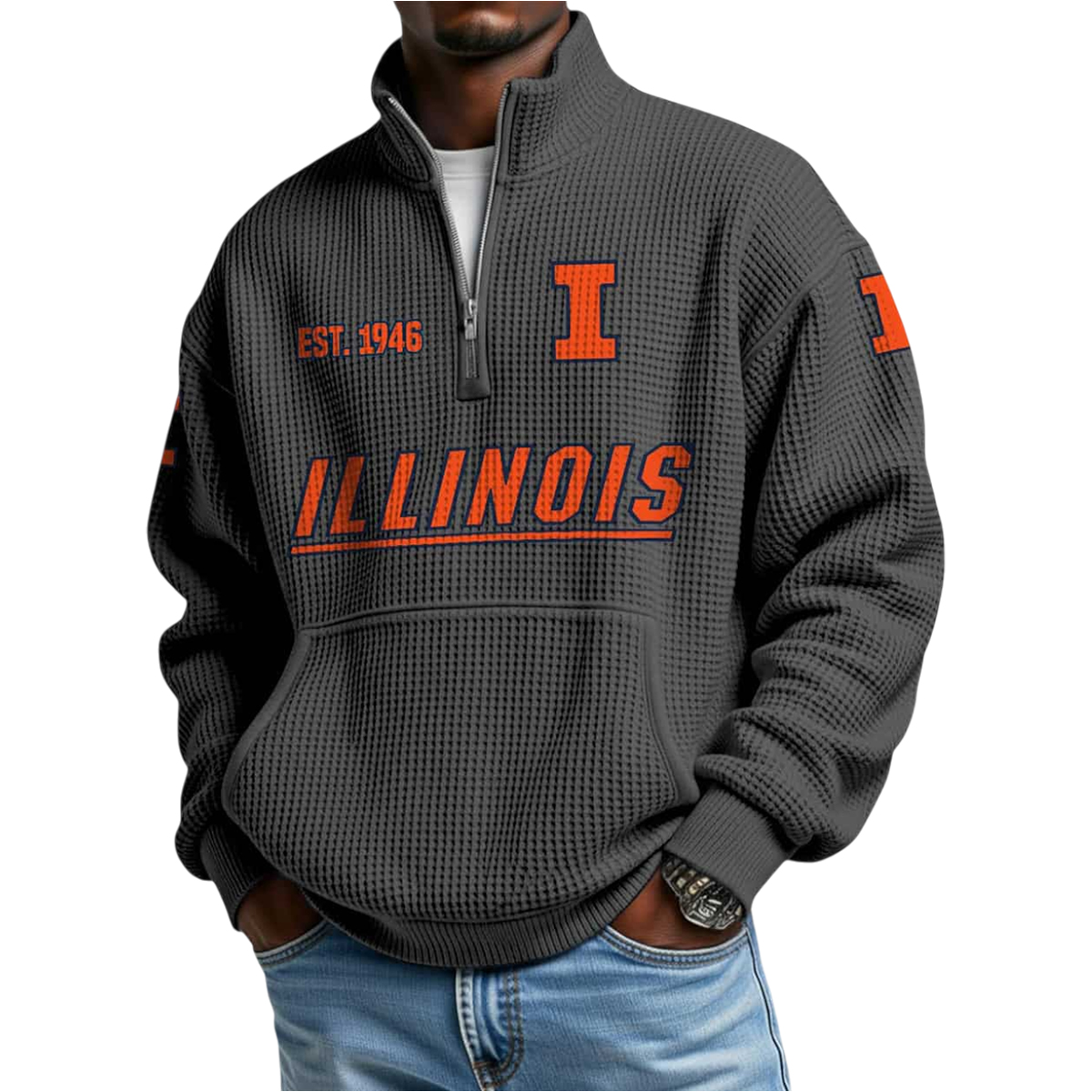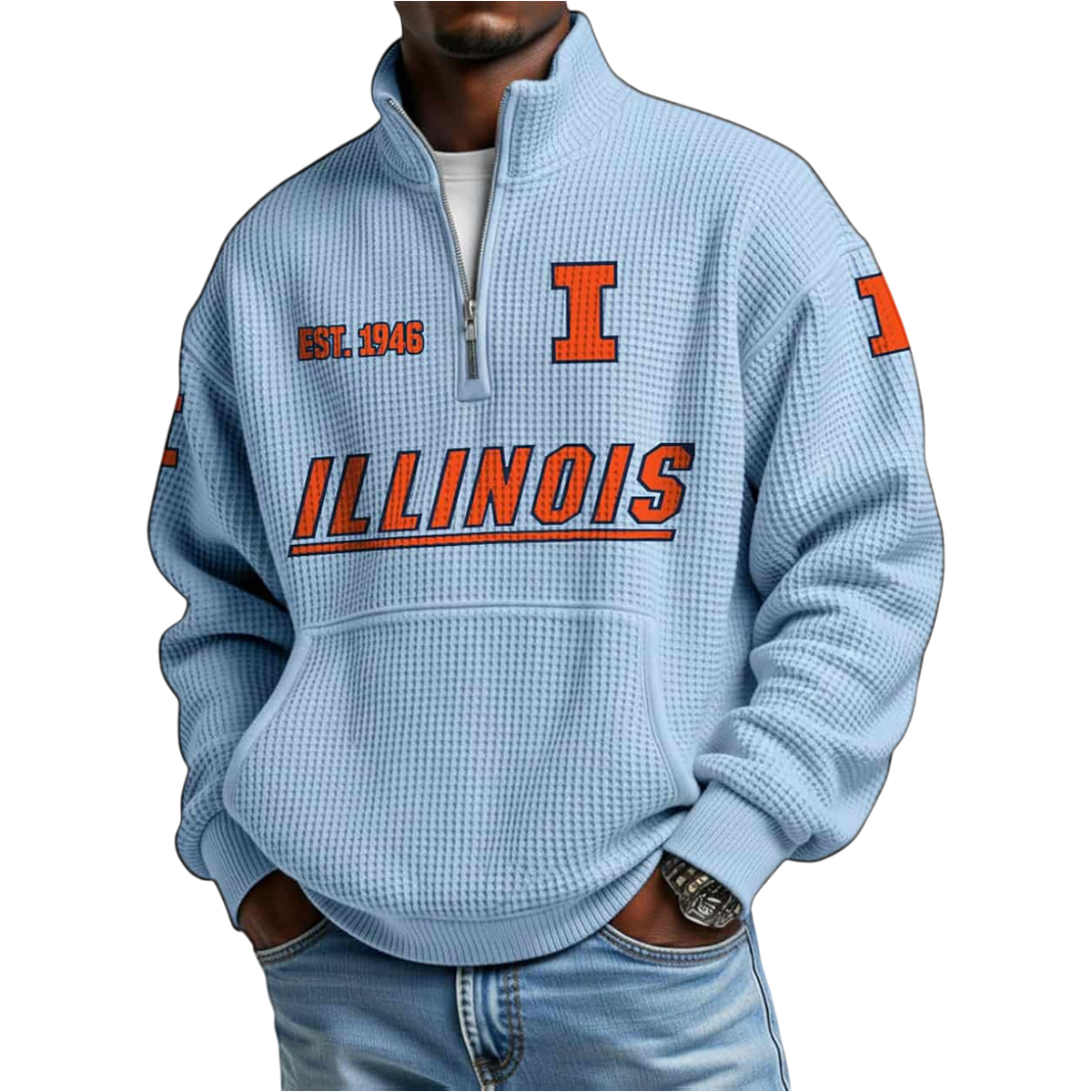 Illinois Est 1946 Waffle Stand Collar Half Zip Sweatshirt