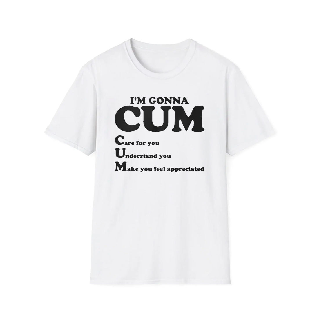 This shirt is designed to be as comfortable as it is clever. It’s crafted from a soft, premium-quality cotton fabric that feels fantastic against the skin, making it a perfect choice for all-day wear. The tee features a classic unisex cut with a durable crew neck, offering a relaxed and flattering fit for everyone. The graphic is the star at the top, a bold, provocative headline captures attention. Below, the design reveals a clever acronym that redefines the main word Care for you, Understand you, and Make you feel appreciated. The text is applied with a high-quality printing process to ensure it remains sharp, clear, and durable through countless washes and double-takes.
