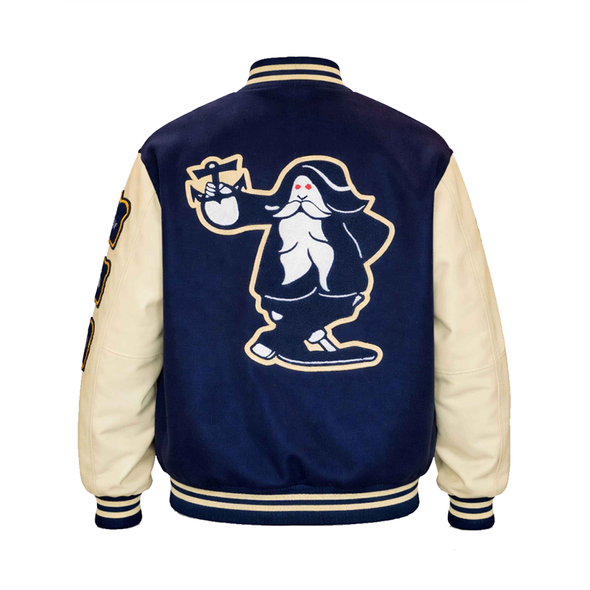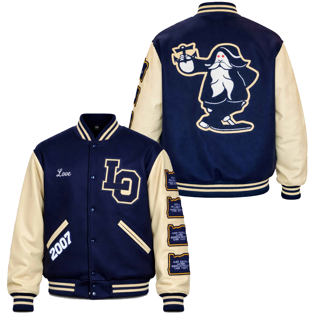 The back design stands out with a large illustrated graphic, adding character and visual storytelling to the jacket. This artwork represents confidence, individuality, and the fearless mindset that defined Kevin Love’s rise during his Lake Oswego years. Ribbed cuffs, collar, and hem complete the traditional varsity look, ensuring the jacket feels authentic while remaining stylish.