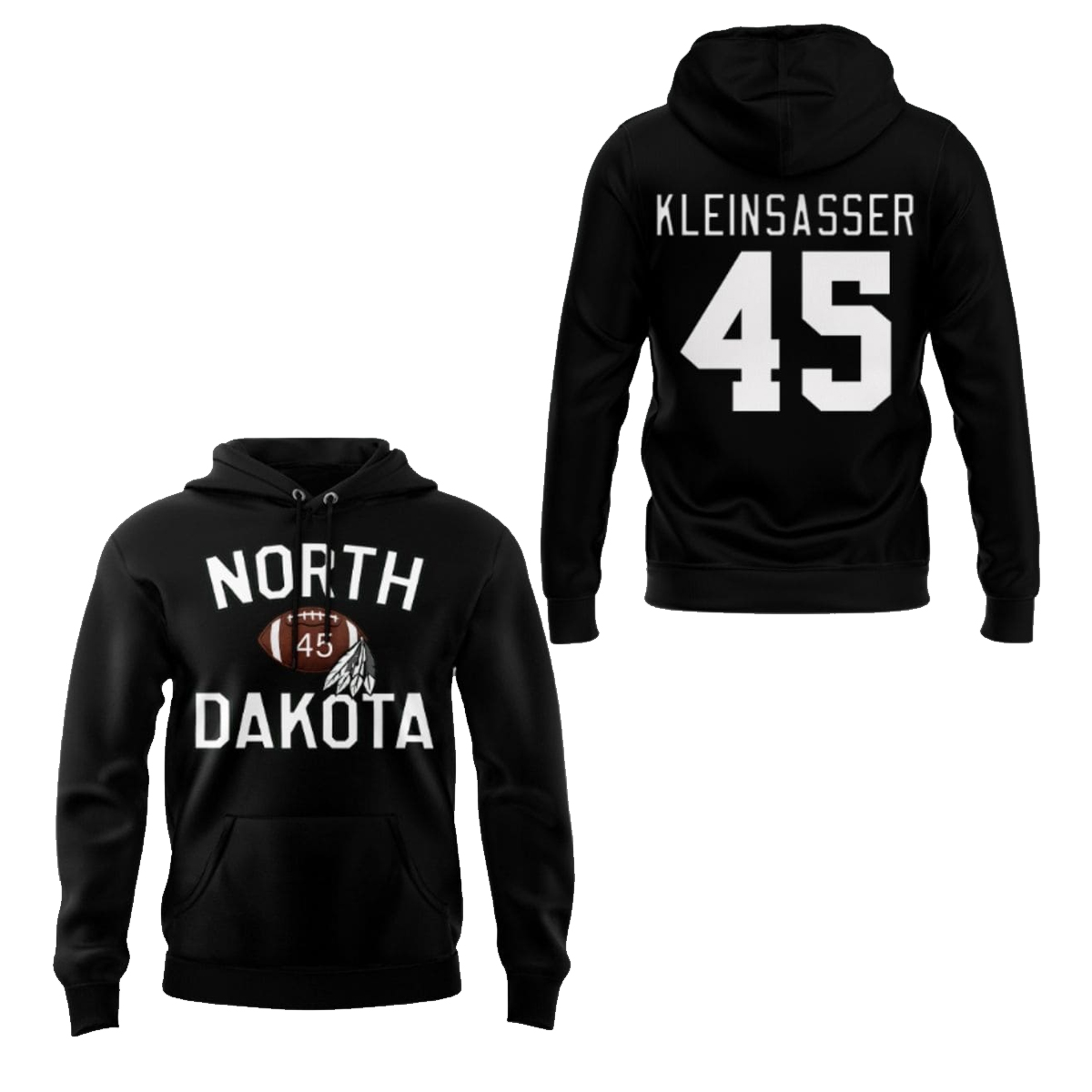 At the heart of this design is a nod to a well-known North Dakota football figure whose name and number carry meaning for longtime supporters. The front features a strong “North Dakota” wordmark paired with a football graphic and the number 45, a combination that reflects grit, physical play, and old-school fundamentals. Turn it around and the back keeps things clean and powerful with KLEINSASSER across the shoulders and 45 printed large below, just like a true on-field statement, translated into everyday wear. This hoodie quietly references a football era remembered for toughness, leadership, and no-nonsense performance, making it especially meaningful for those who followed the program closely during that time.