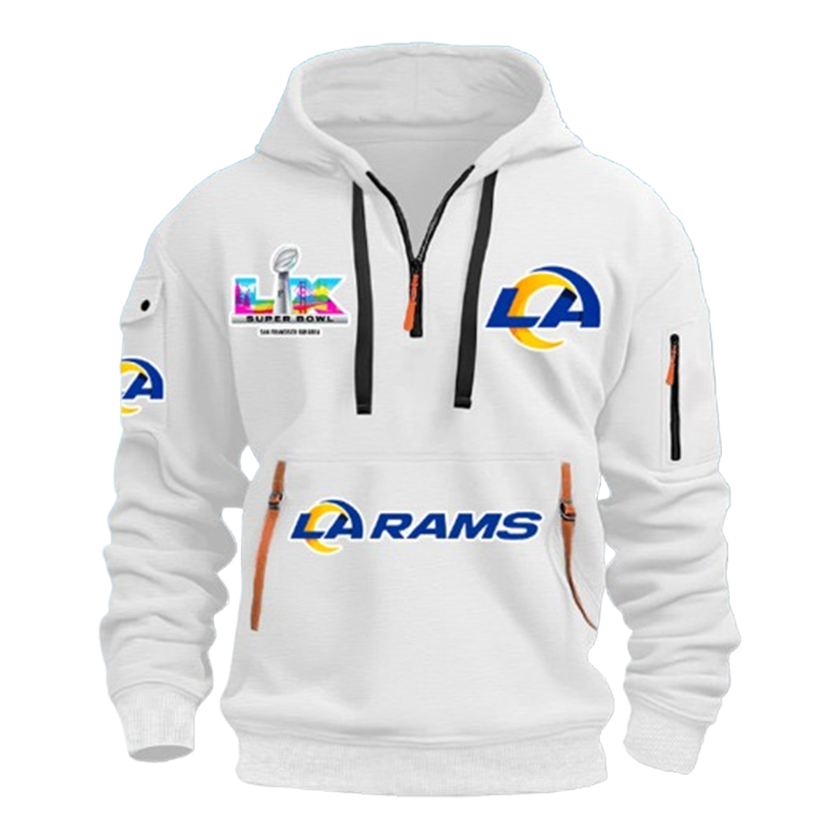 The LA Rams Bowl 2026 Quarter Zip Hoodie is more than a piece of fan apparel, it’s a wearable reminder of one of the most anticipated moments of the 2026 season. Designed for those who live for big-game atmosphere and bold team identity, the LA Rams Bowl 2026 Quarter Zip Hoodie brings together striking visuals, practical design, and unmistakable championship-era attitude in one standout hoodie.