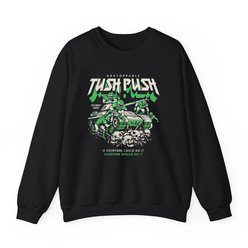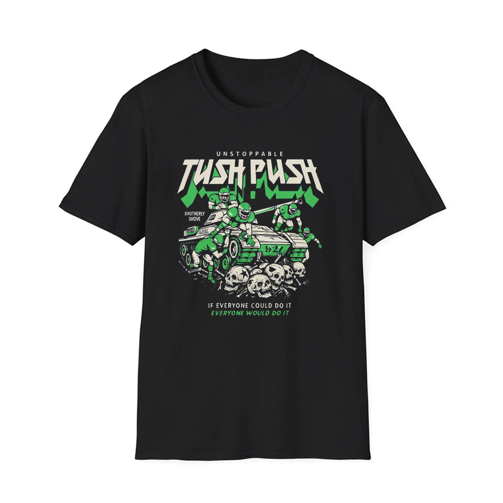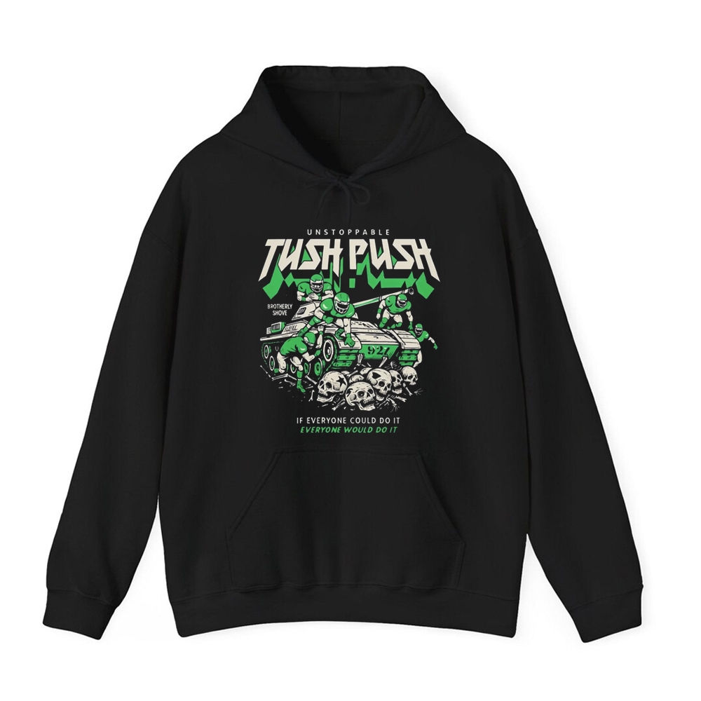 Bring raw power and elite-level confidence to your wardrobe with the Landon Dickerson’s Unstoppable Tush Push Brotherly Shove Shirt. Inspired by the most dominating play in football and the unstoppable force behind it, this shirt is for fans who appreciate strategy, strength, and a little chaos in the trenches.
