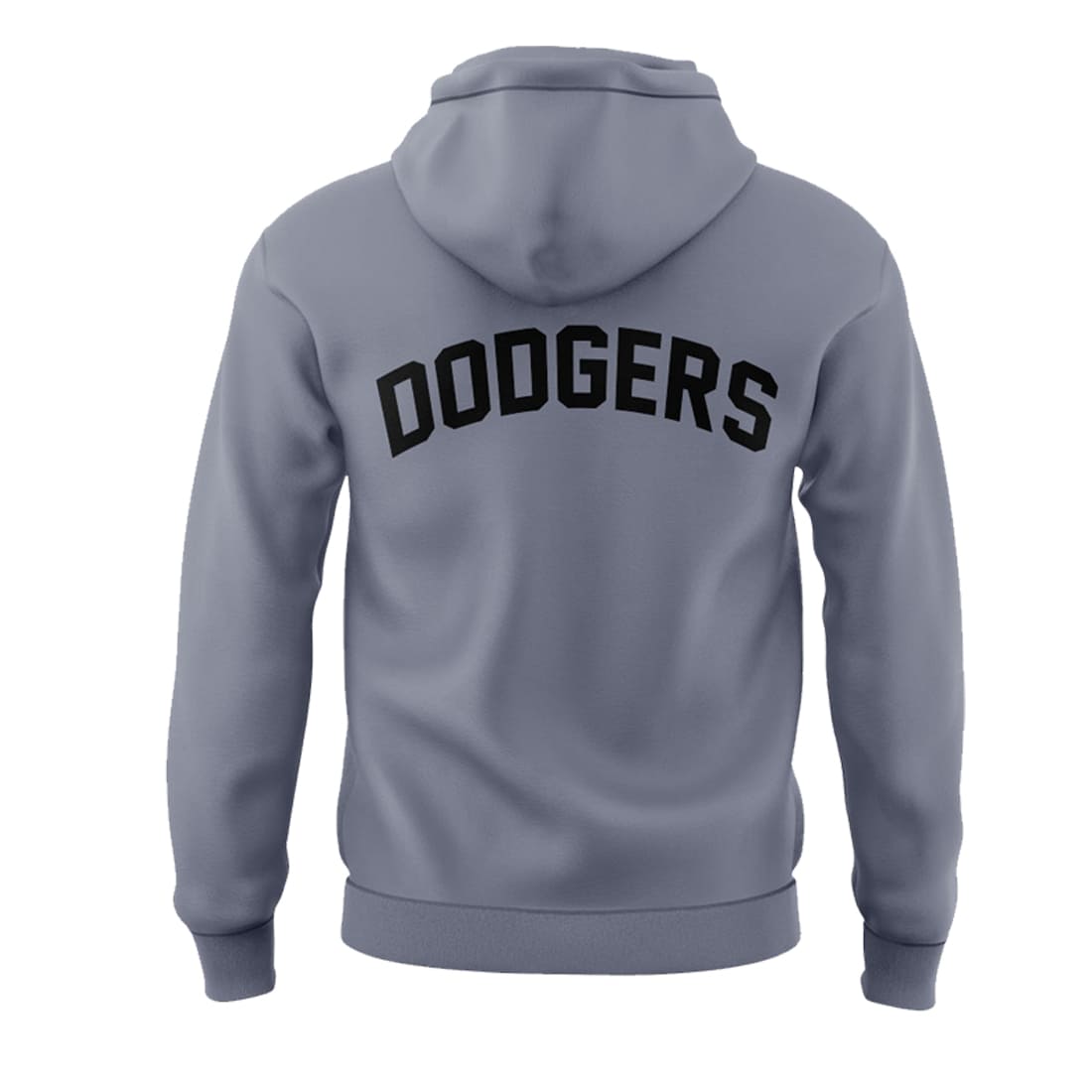 This Dodgers hoodie comes in a cool-toned gray color, giving it a modern and versatile look that pairs well with anything. The front features a small, classic Dodgers script logo on the left chest in white, offering a subtle yet iconic touch. But the real statement is on the back, where the word “DODGERS” is boldly printed in black, arched block lettering a style reminiscent of classic team jackets and vintage sports apparel. The hoodie is made from a soft, high quality fabric blend, ensuring warmth and comfort whether you’re at the stadium, out in the city, or just lounging at home. The adjustable drawstring hood and spacious kangaroo pocket add both function and coziness, making it a must have for any true fan.