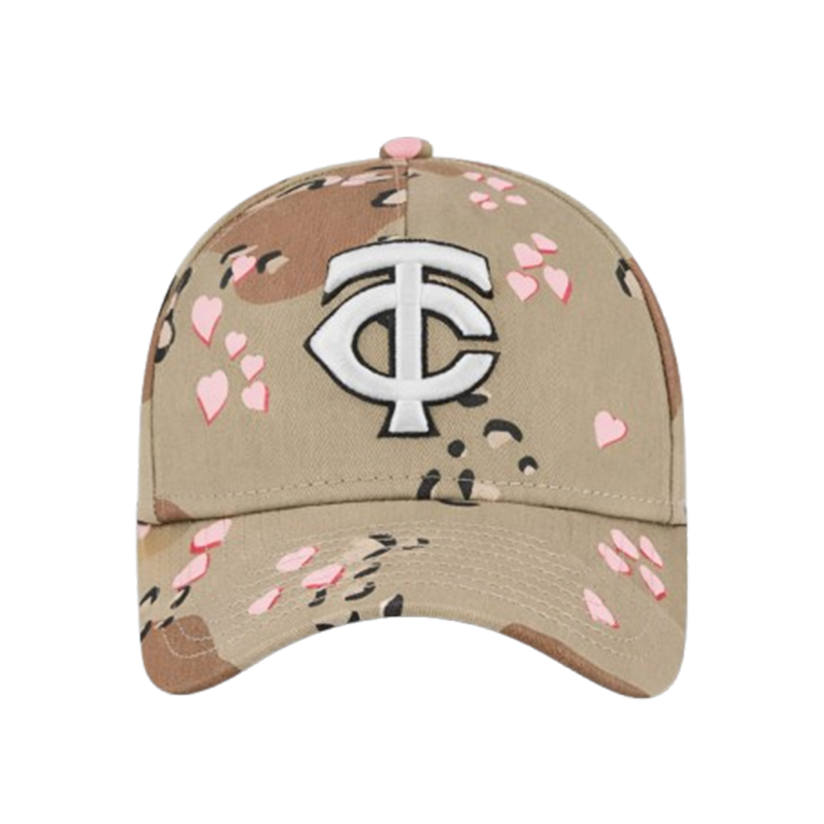 The Minnesota Twins Camo Hearts Valentine’s Day Hat 2026 features a desert-inspired camouflage base scattered with subtle pink heart accents across the crown and brim. This contrast creates visual depth, tough textures balanced by playful highlights. Centered on the front panel is the bold interlocking “TC” embroidery, raised and clean, delivering instant Twins identity. A structured crown keeps the silhouette sharp, while the curved brim offers an easy, timeless profile that pairs well with hoodies, jackets, or casual tees.