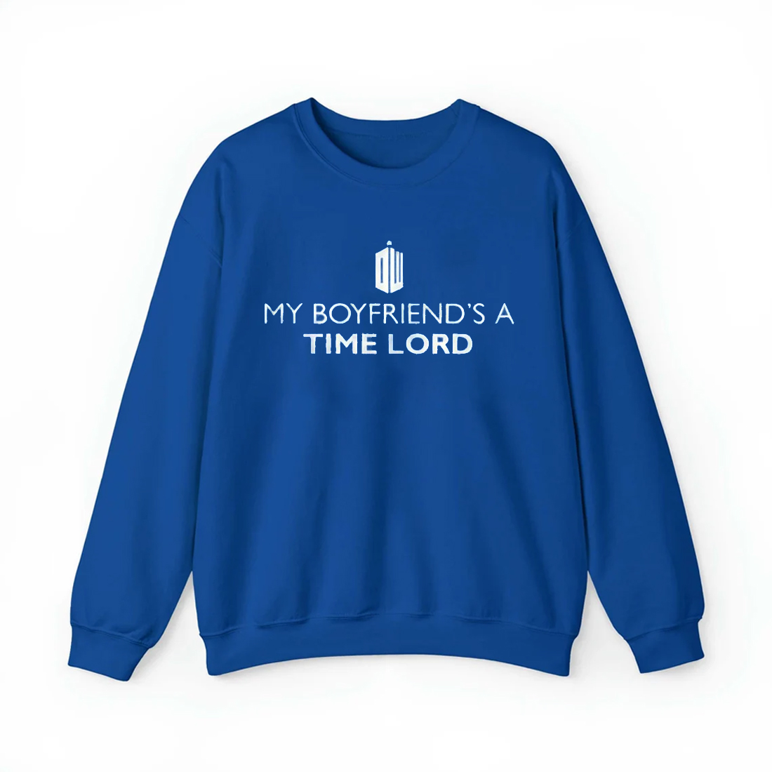 The My Boyfriend’s A Time Lord Shirt features a bold, clean design on a vibrant blue background. With crisp white text that reads MY BOYFRIEND’S A TIME LORD and a futuristic symbol above it, the shirt captures the essence of sci-fi romance with a humorous twist. It’s perfect for fans who want to express their geeky side while celebrating their significant other in a fun and creative way.