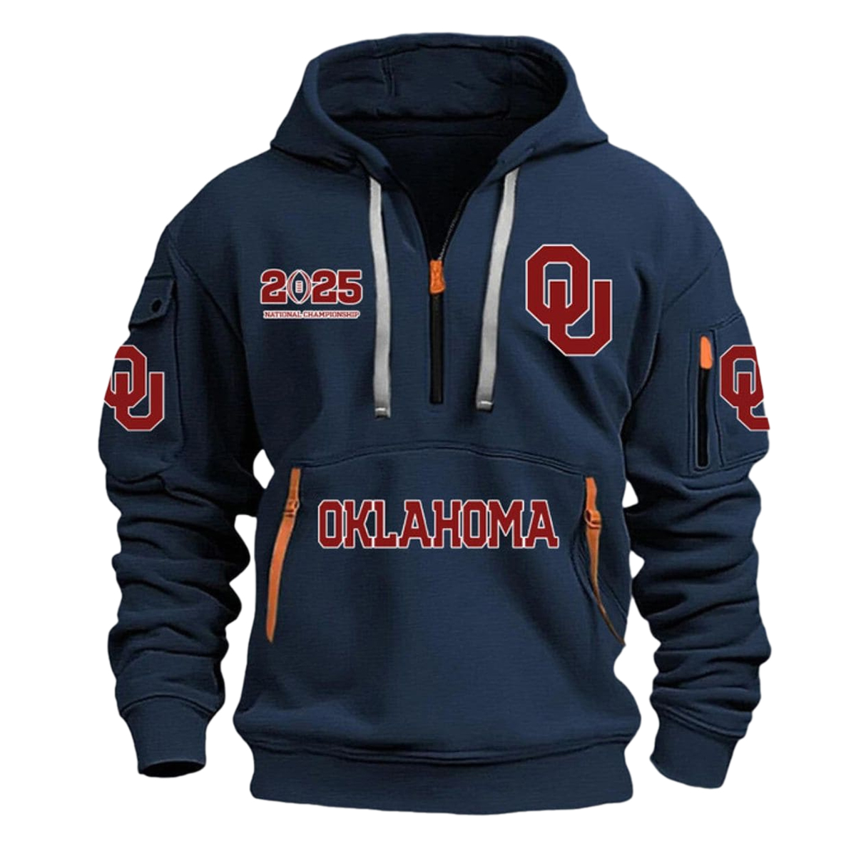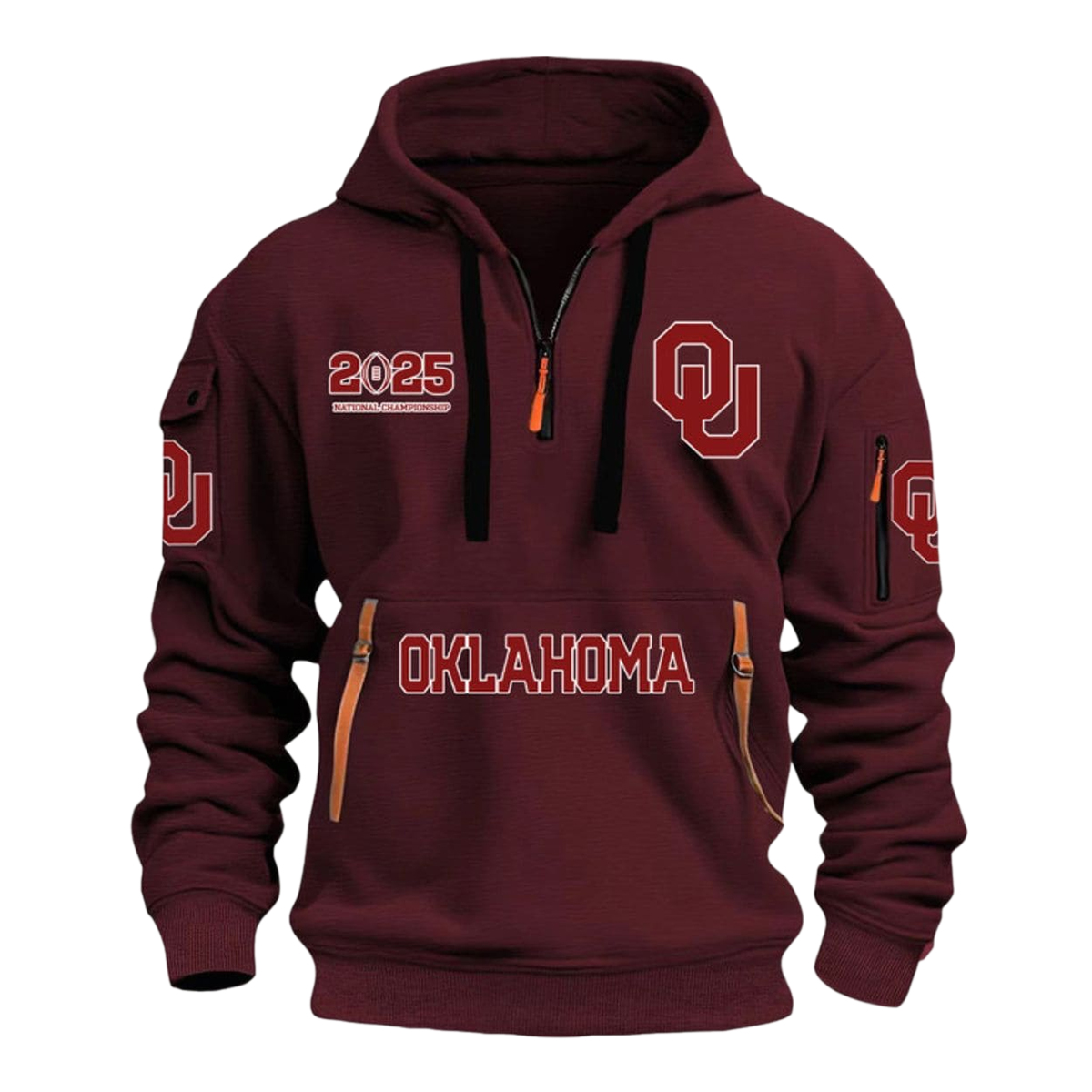 In conclusion, the Oklahoma Football 2025 National Championship Quarter Zip Hoodie is more than just apparel, the hoodie is a wearable tribute to triumph, teamwork, and the pride of being part of something special. Whether worn casually or as a centerpiece for game-day outfits, it brings championship energy into your daily life. Add it to your collection and carry the spirit of the 2025 season with you wherever you go.