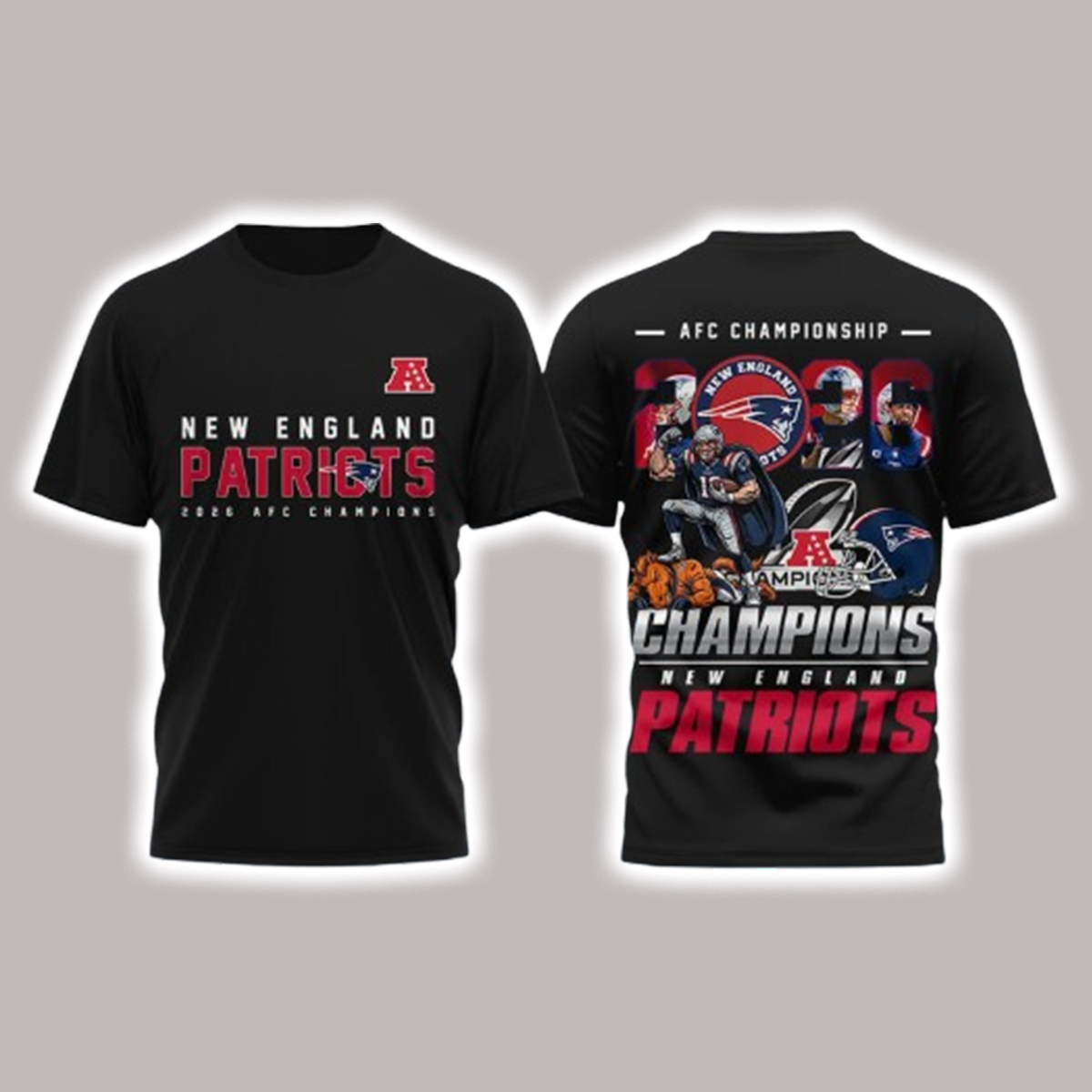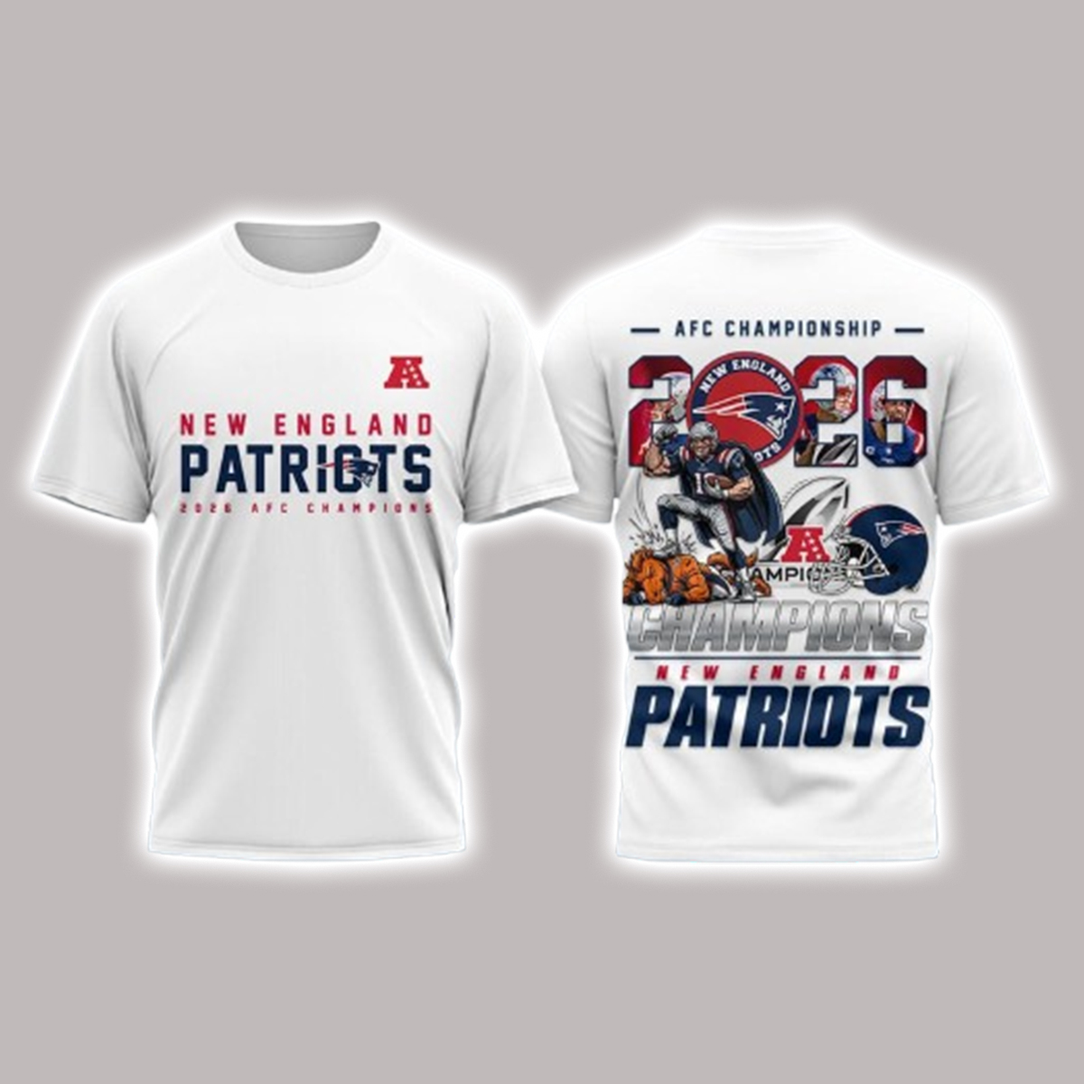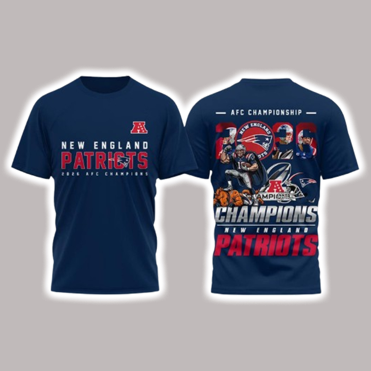 The Patriots 2026 AFC Championship Champions Shirt brings that story to life with bold graphics that capture the energy of the game. The front features dynamic championship text and emblematic artwork inspired by this defining win, while rich team colors and standout design elements ensure the shirt stands out as both a celebratory keepsake and stylish everyday wardrobe piece.