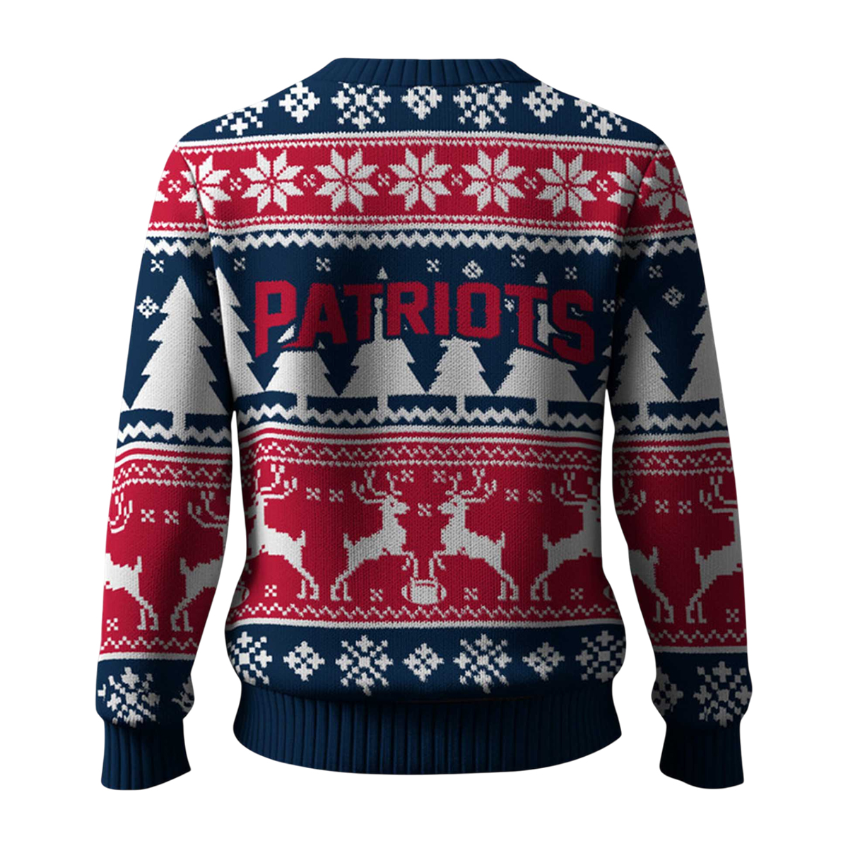 Celebrate the holidays the right way with football, festive cheer, and fearless team pride. The Patriots Reindeer Football Christmas Ugly Sweater is the ultimate statement piece for fans who want to blend Christmas fun with their favorite pastime.