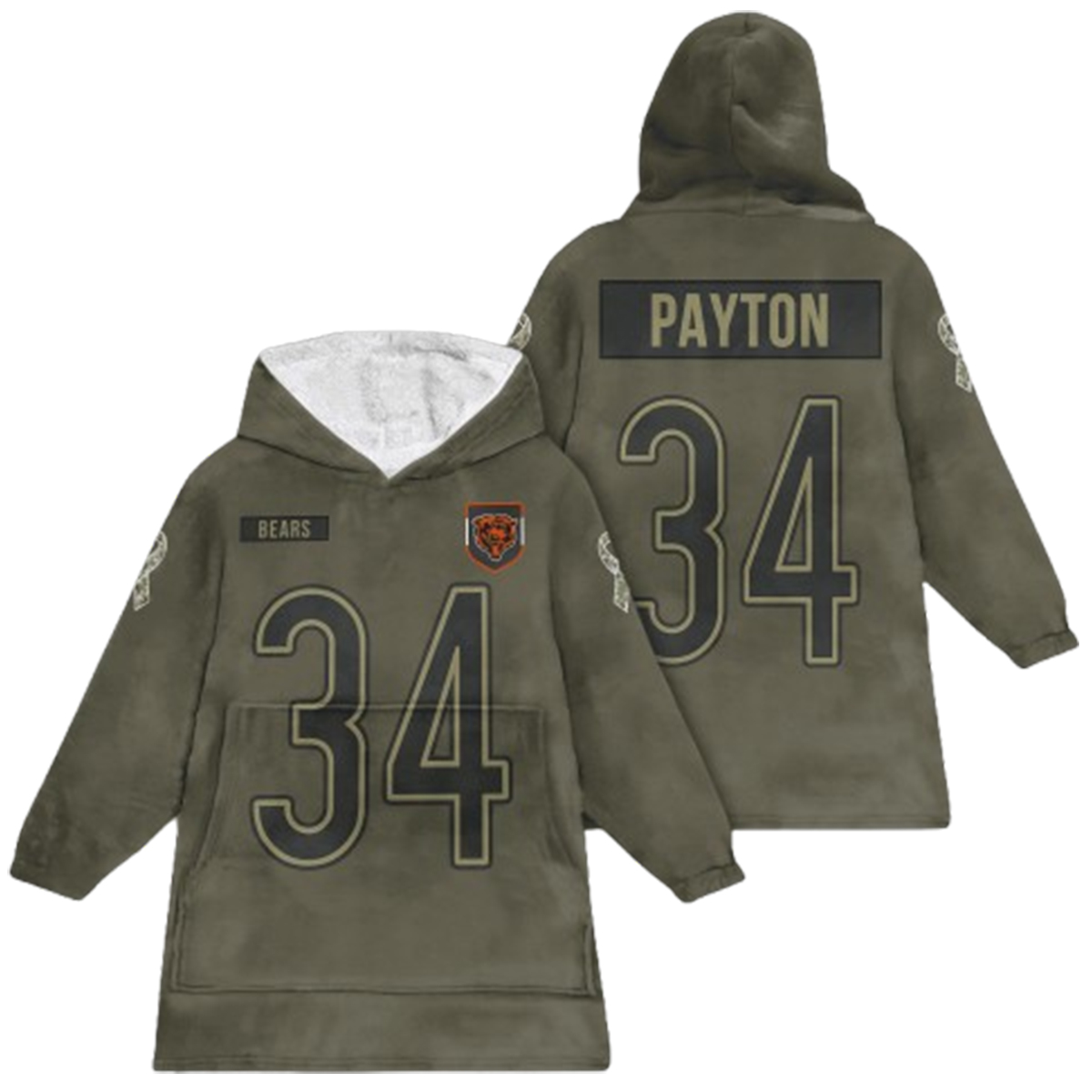 Wrap yourself in the legacy of greatness with the Payton 34 Chicago Football Blanket Hoodie. This oversized hoodie delivers unbeatable comfort with its plush fleece exterior and cozy sherpa lined interior perfect for chilly games, lazy Sundays, or showing love for one of Chicago’s most iconic football legends.