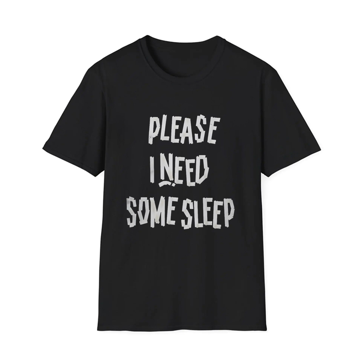 This sleek, black t-shirt features the distressed, slightly exhausted-looking white text PLEASE I NEED SOME SLEEP. The distressed font enhances the mood of the message, suggesting a deep, persistent state of weariness. This shirt is far more than just casual wear; it’s a piece of highly relatable cultural commentary on the realities of modern life the hustle, the late nights, the constant demands that often leave us sleep-deprived. Wearing this garment is an act of candid self-expression and a humorous way to set expectations for your energy levels for the day.