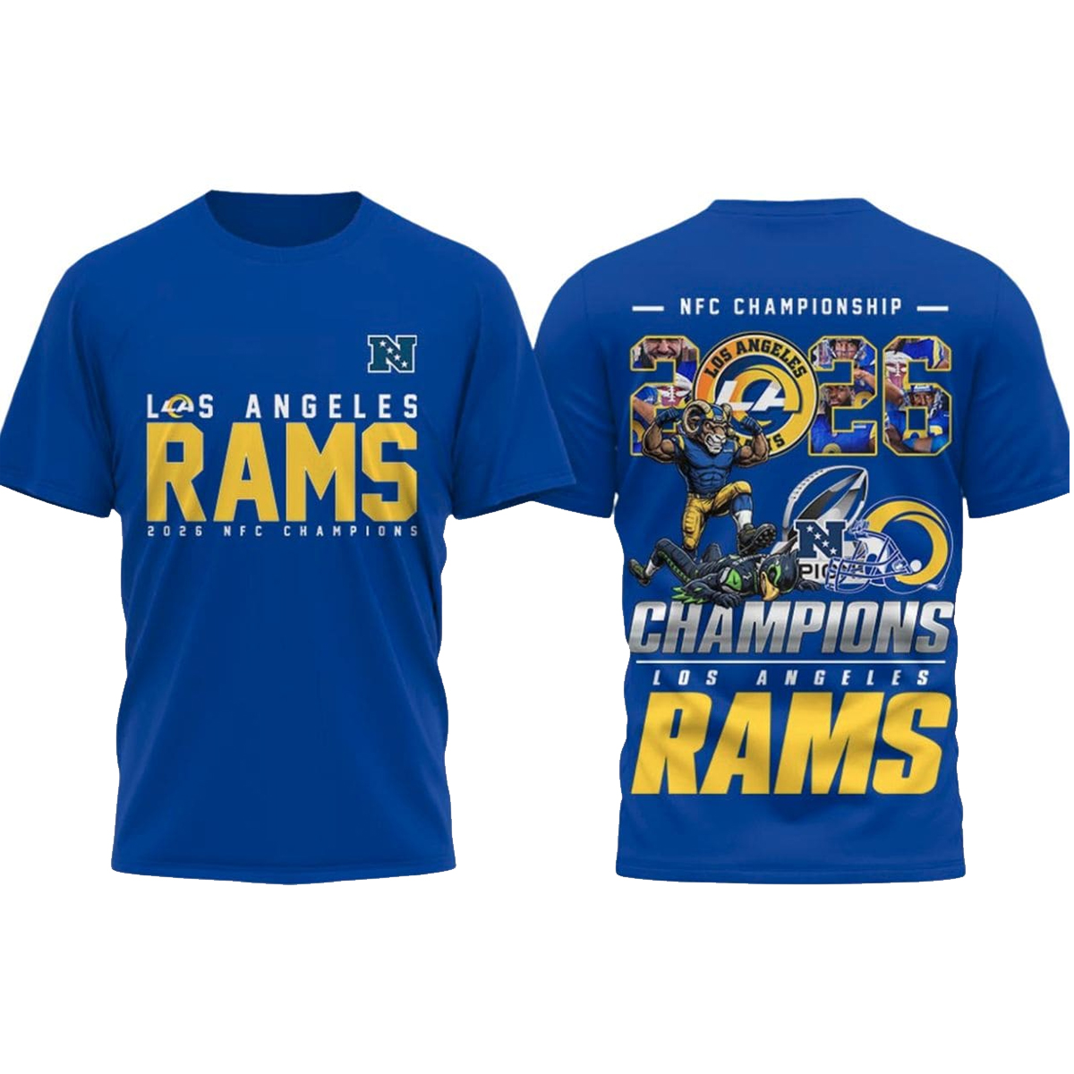 The Rams 2026 NFC Championship Shirt is designed to capture the electricity of a season that ended with Los Angeles standing tall at the top of the conference. More than just a graphic tee, this shirt transforms a defining playoff moment into a wearable statement of pride, confidence, and loyalty.