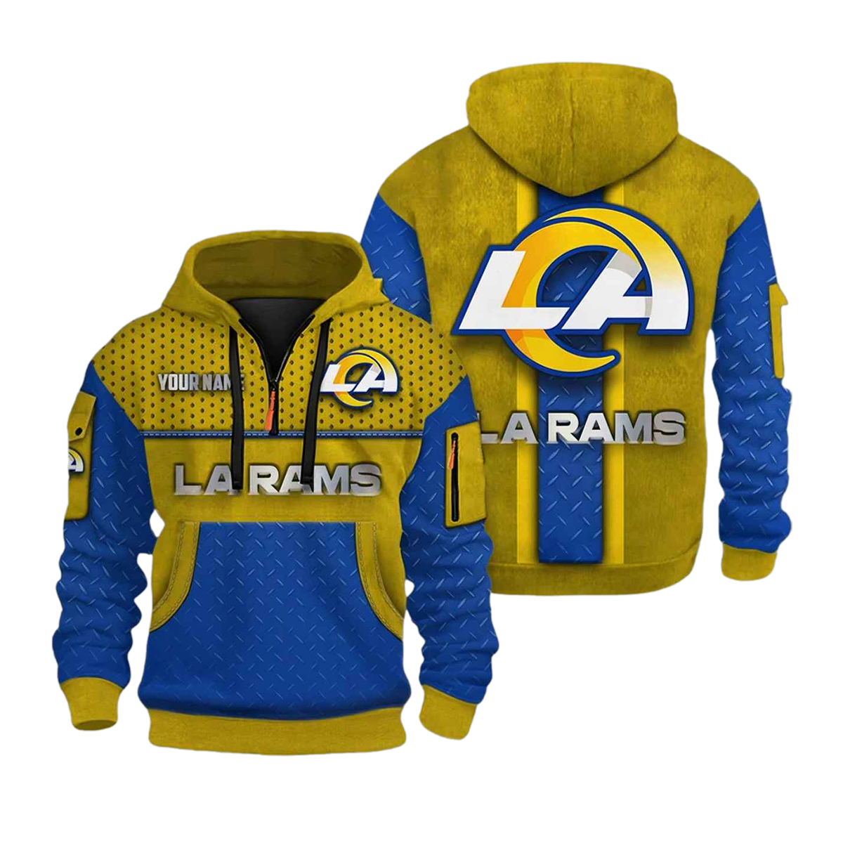 The Rams Personalization 3D Half Zip Hoodie is created for fans who want their support to feel personal, confident, and visually powerful. Designed with a striking 3D graphic layout and the option to add your own name, this hoodie turns classic fan apparel into a statement piece.