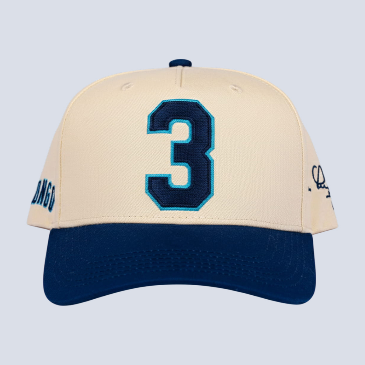 The Rays Evan Longoria Snapback Cap Giveaway 2026 features a structured cream crown paired with a deep navy brim, creating a sharp, vintage-inspired contrast. Front and center, the number “3” is embroidered in navy with a teal outline, delivering depth and visual impact while keeping the design minimal and powerful. The side panel includes subtle detailing that nods to Tampa Bay identity, while a signature-style script on the opposite side adds a commemorative touch tied to Evan Longoria’s legacy. The six-panel construction offers durability and a structured fit, while the flat snapback closure ensures adjustable comfort for different head sizes. Embroidered eyelets enhance airflow, making it suitable for warm game days or everyday wear.