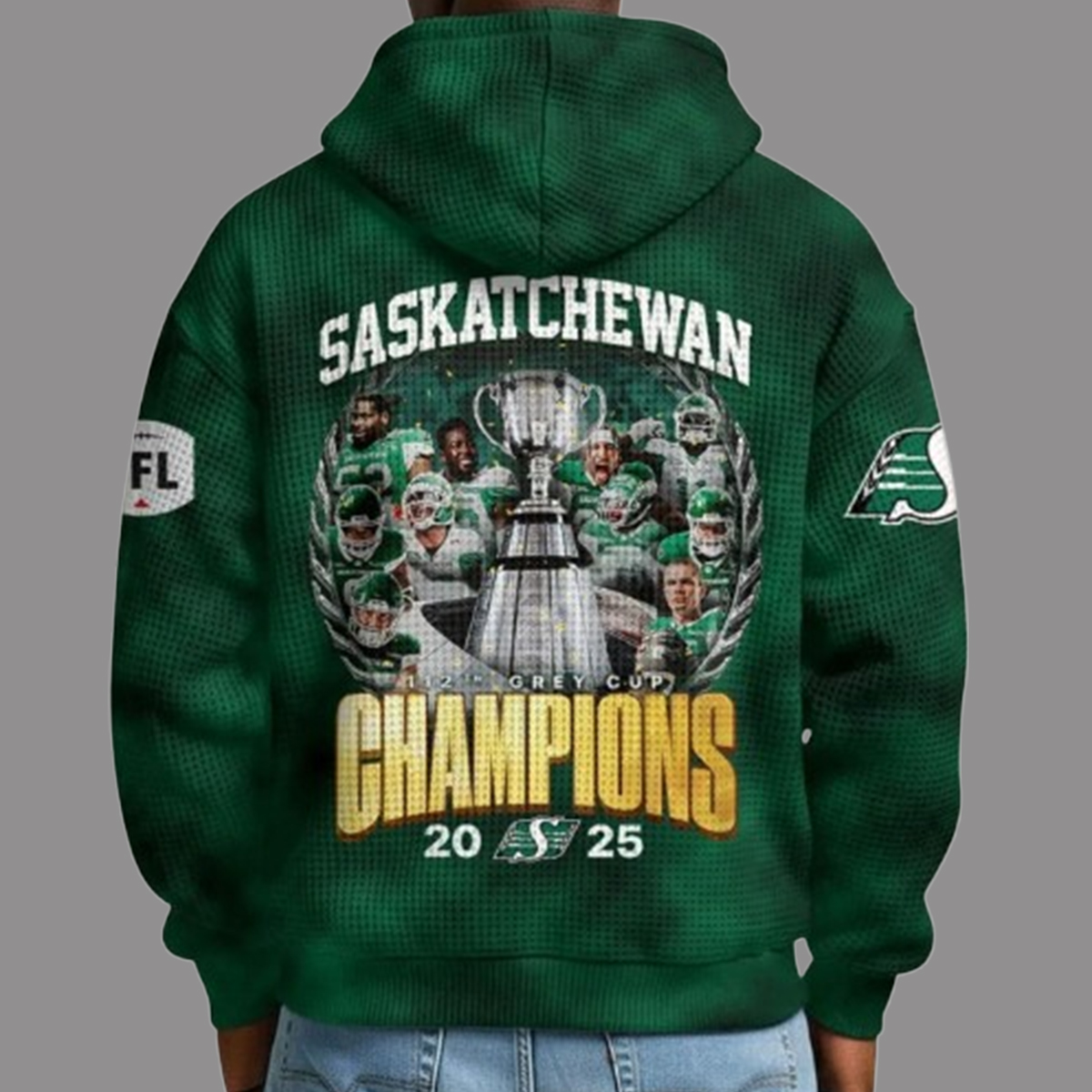 If you’re looking to commemorate a championship season with comfort, detail, and pride, the Saskatchewan Roughriders 2025 Grey Cup Champions Waffle Hoodie is the perfect choice. Wear it proudly and carry the memory of a title-winning year wherever you go.