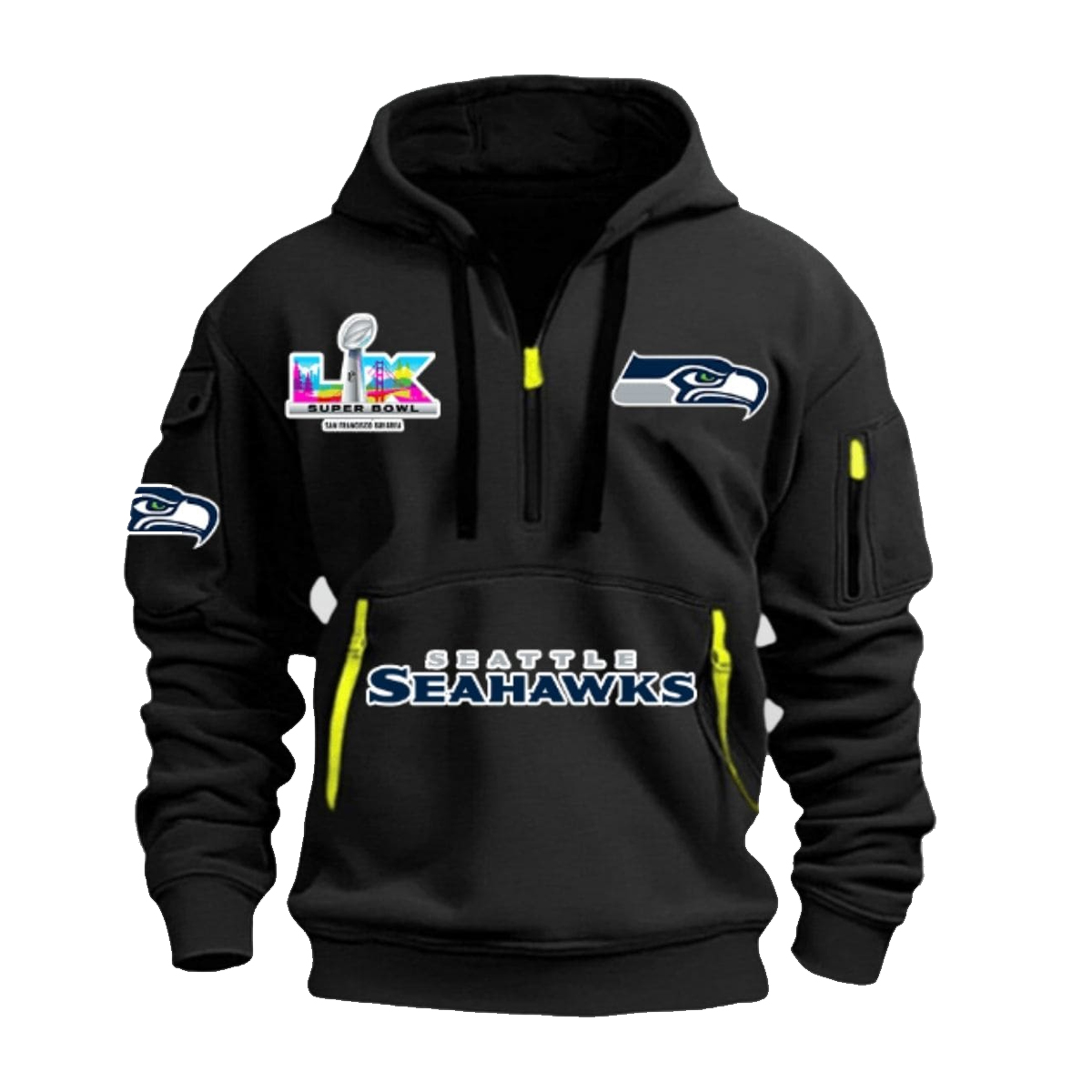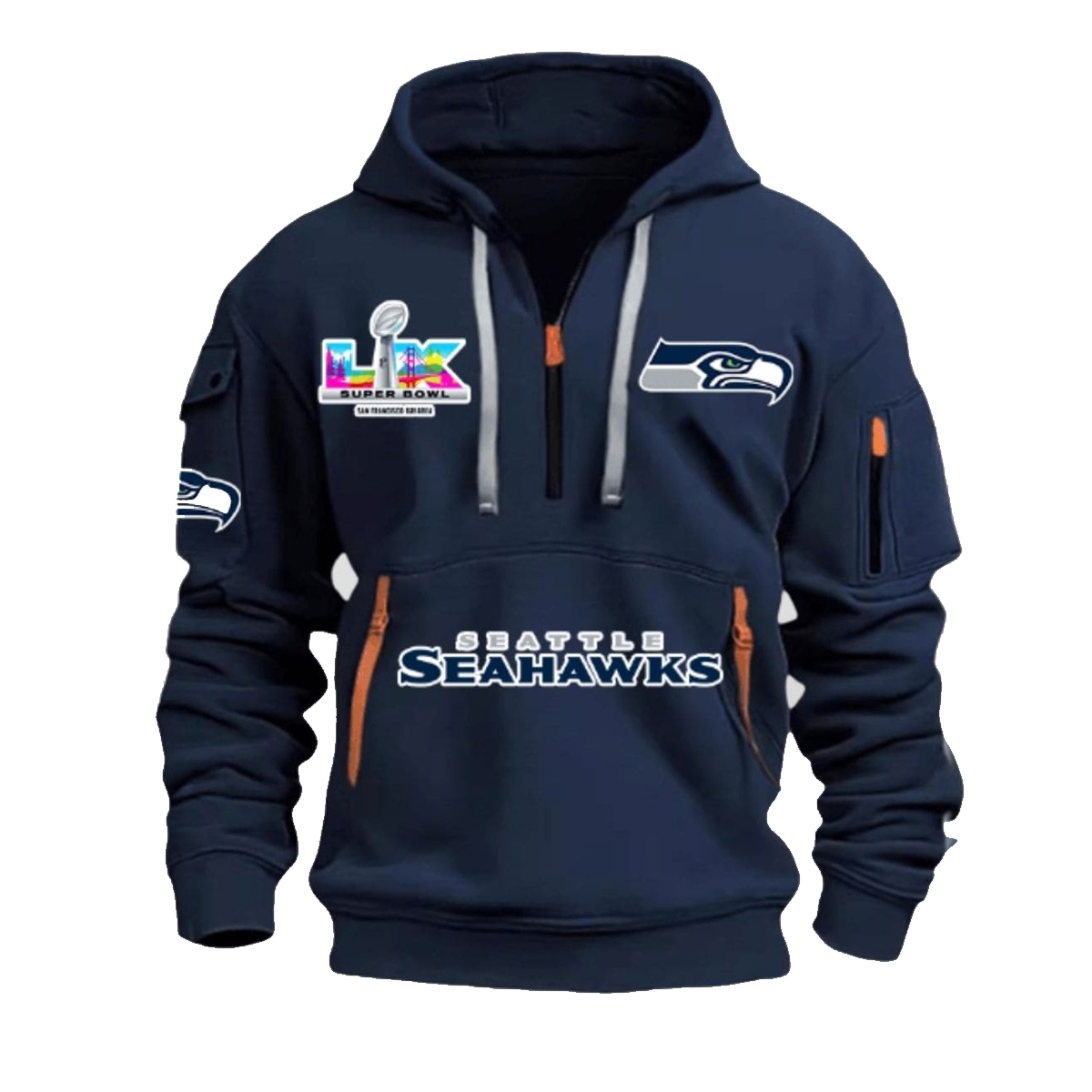 The Seahawks 2026 LX Quarter Zip Hoodie delivers a strong balance of style, symbolism, and comfort. With its bold color, thoughtful details, and season-inspired design, it’s made for fans who stand behind Seattle with pride and purpose. Whether worn on game day or as part of your everyday rotation, this hoodie reflects the spirit of a team and a fanbase that never backs down.