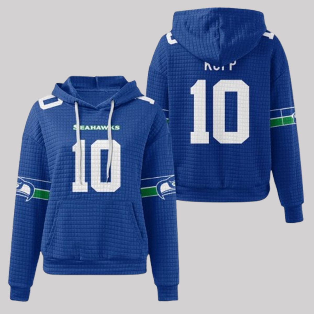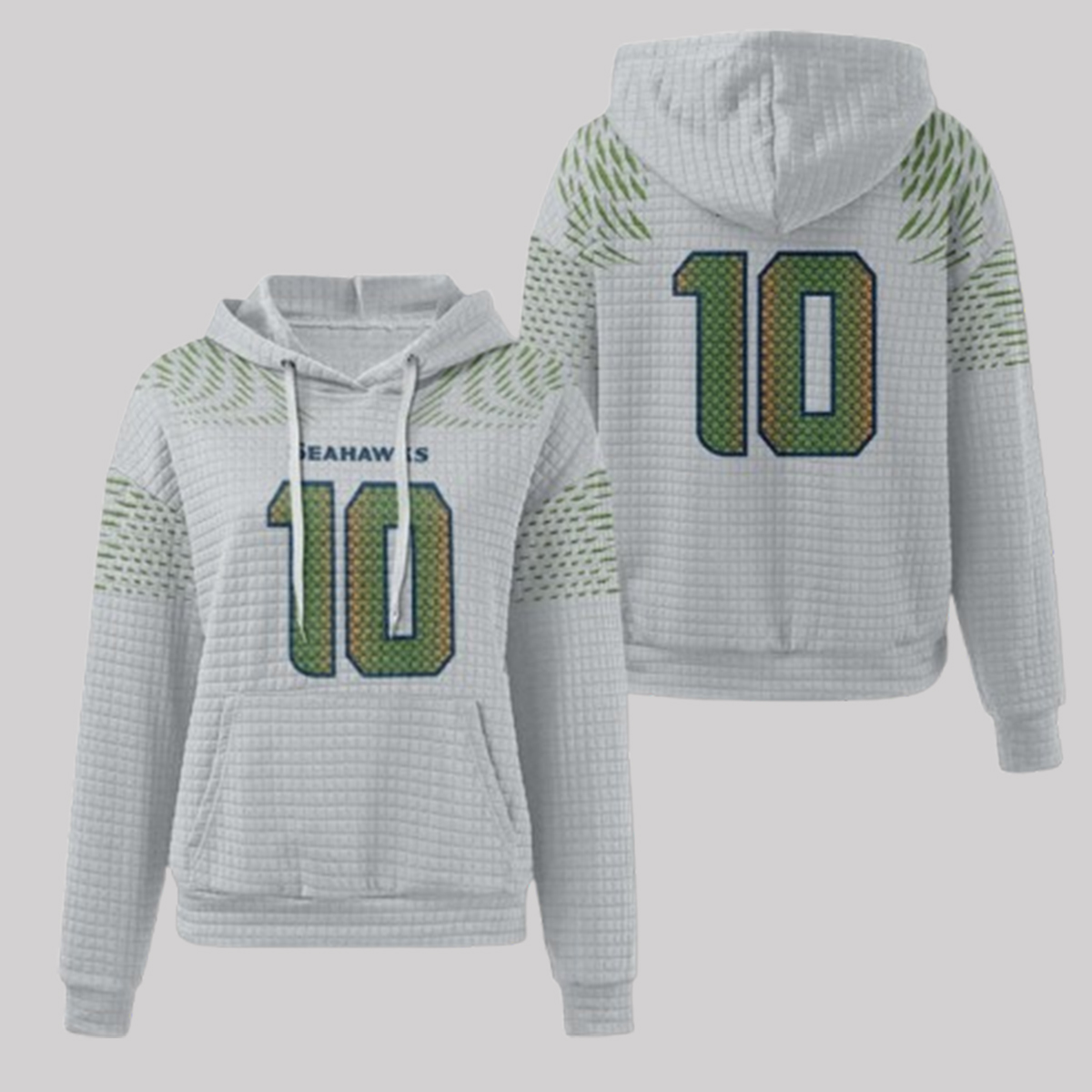 The Seahawks Cooper Kupp 10 Waffle Hoodie represents intelligence on the field and confidence off it. Centered around the iconic number 10, this piece speaks to fans who admire route mastery, relentless preparation, and clutch performances. It’s not just about showing support, it’s about aligning with a standard of excellence.