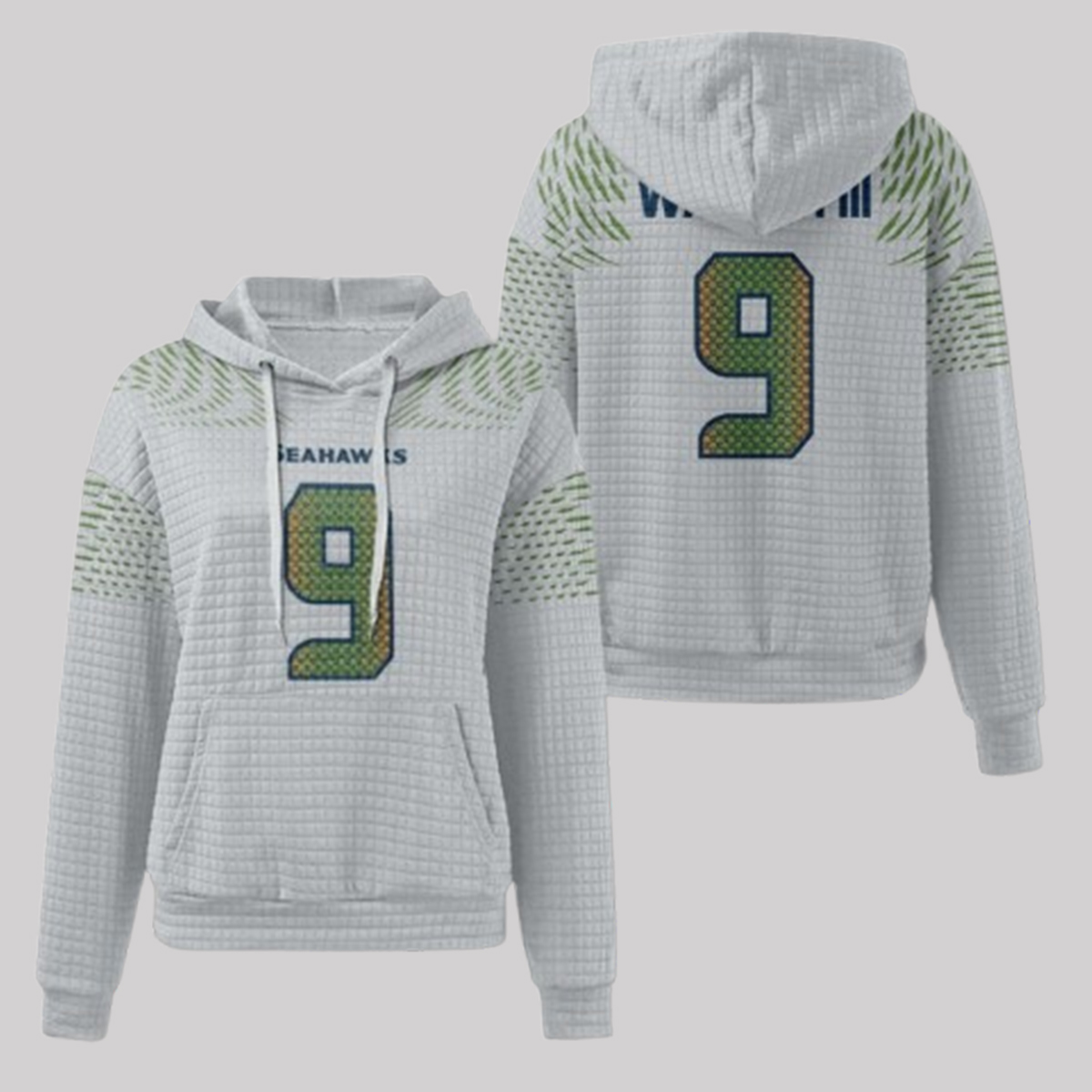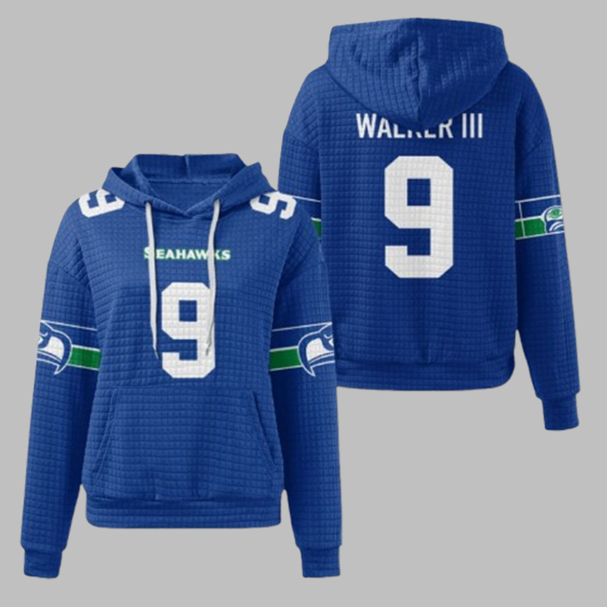 The Seahawks Walker III 9 Waffle Hoodie brings together identity, momentum, and confidence in a single piece. Built around the instantly recognizable number 9, this hoodie reflects speed, power, and the impact of a player who changed the tempo every time he touched the ball. It’s a statement for fans who follow the action closely and wear their support with pride.