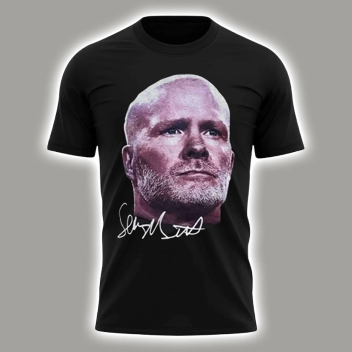 The front of the shirt features a large, detailed, and striking graphic of Sean McDermott’s head, rendered with an artistic, slightly exaggerated style that emphasizes his focused intensity. Below the portrait, a simulated signature is printed, giving the shirt an authentic, personalized feel.